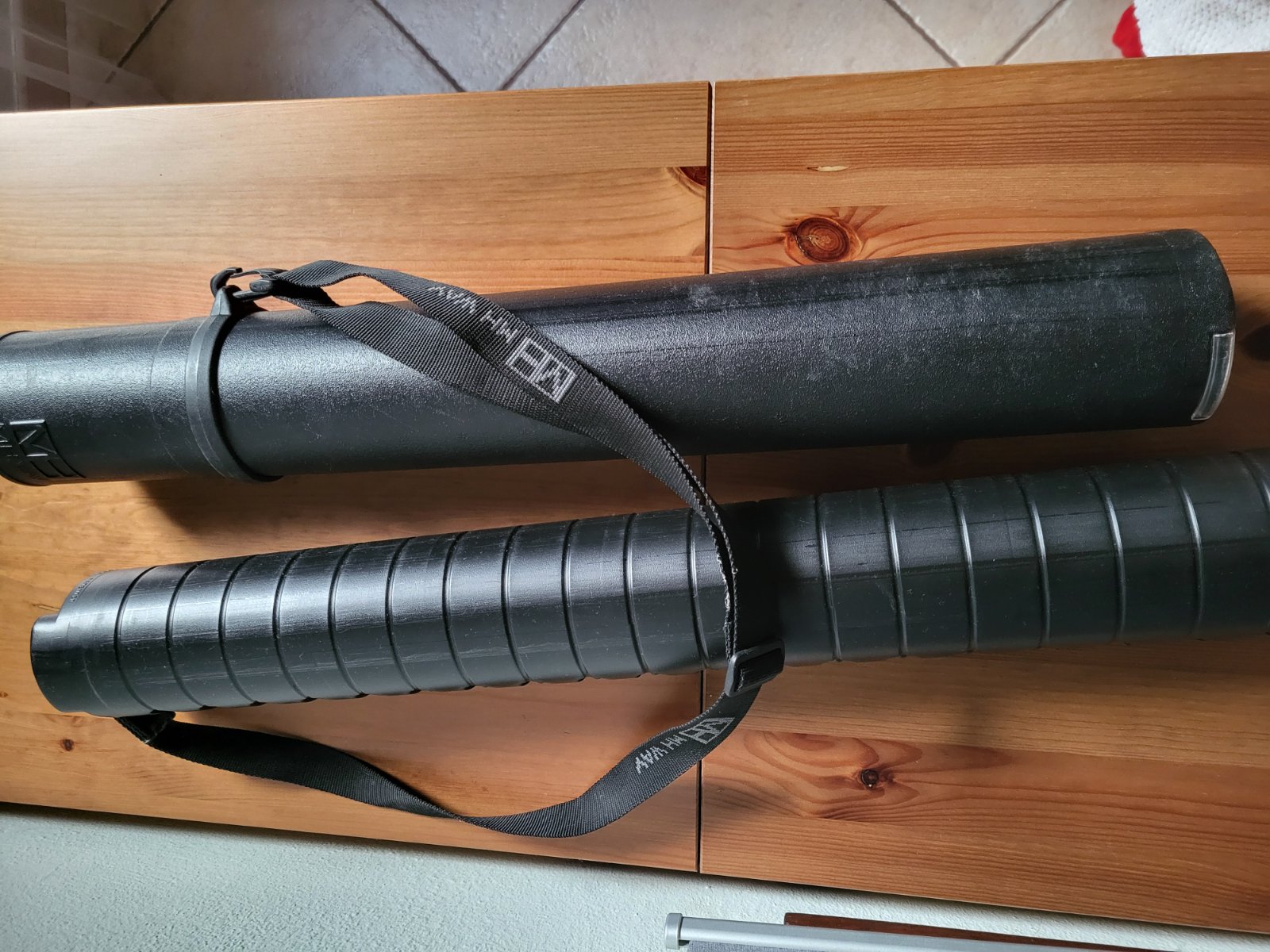 Predam plastový čierny tubus vhodný na jednoduché prenášanie technických výkresov alebo map. Možnosť regulácie na požadovanú dĺžku je opatrená popruhom na rameno. Design Makio Hasuike