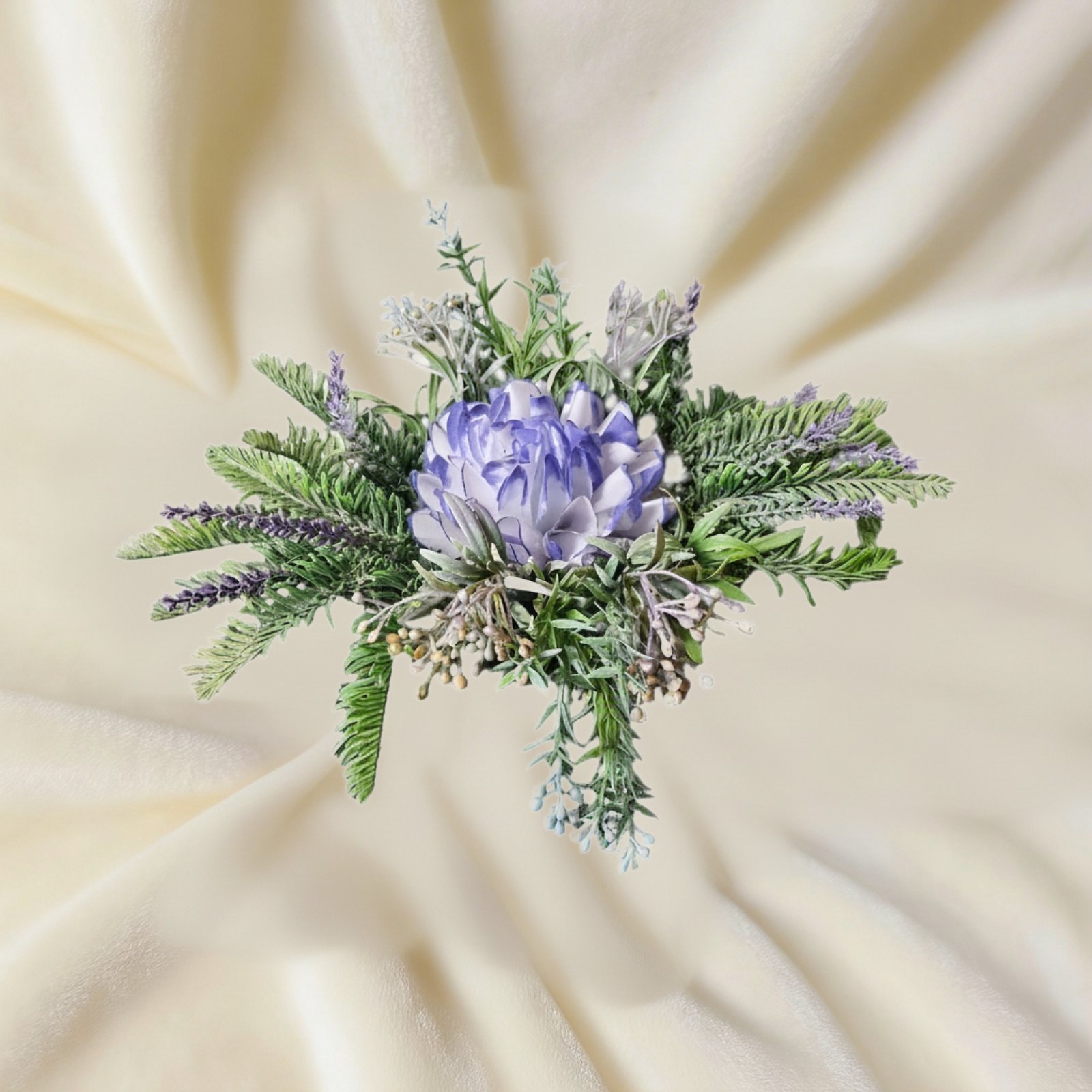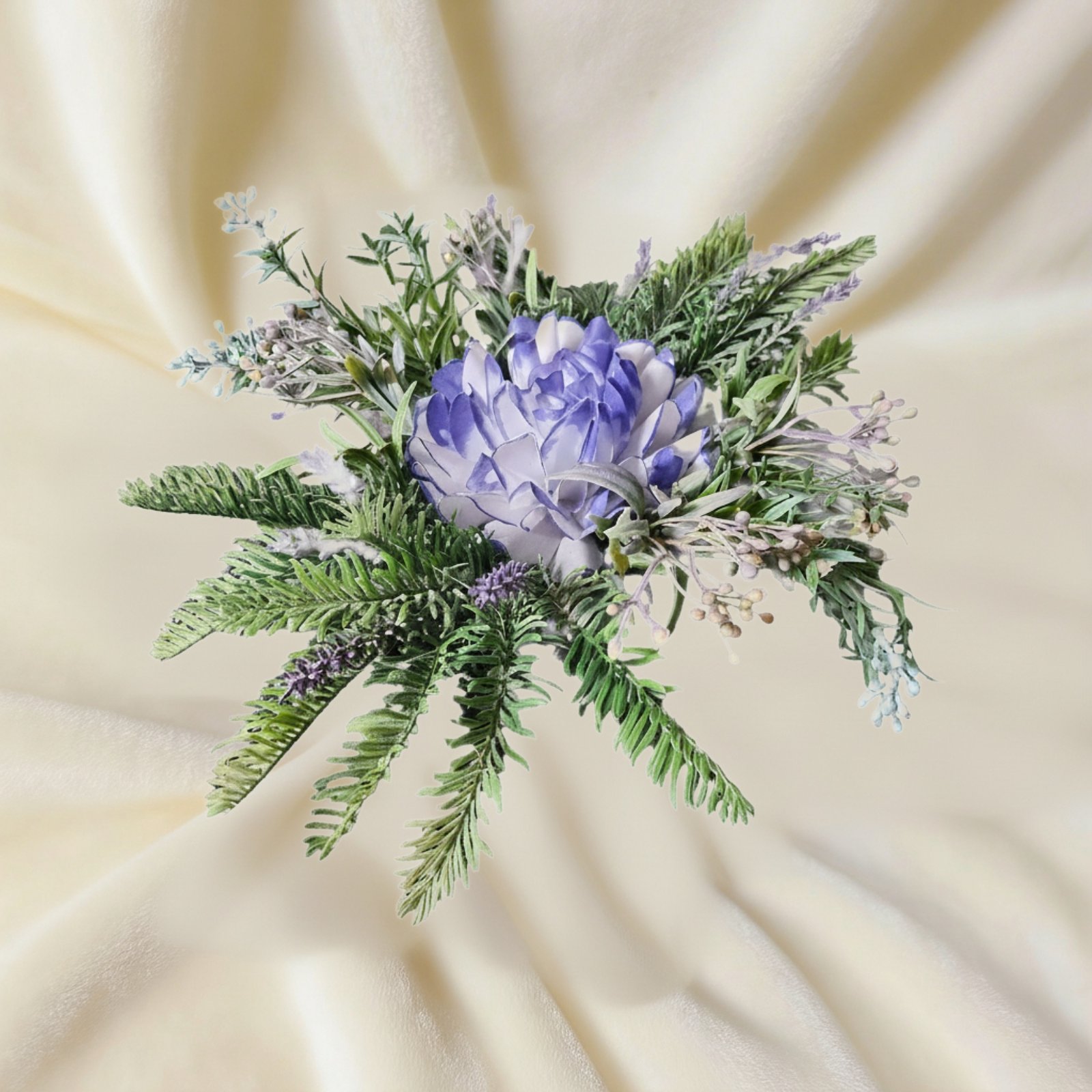 Dušičky - menšia spomienková / hrobčeková ikebanka , ladená do modra, môže byť aj na urnový hrobček, v podlhovastej plastovej miske čiernej farby - dekorácia.