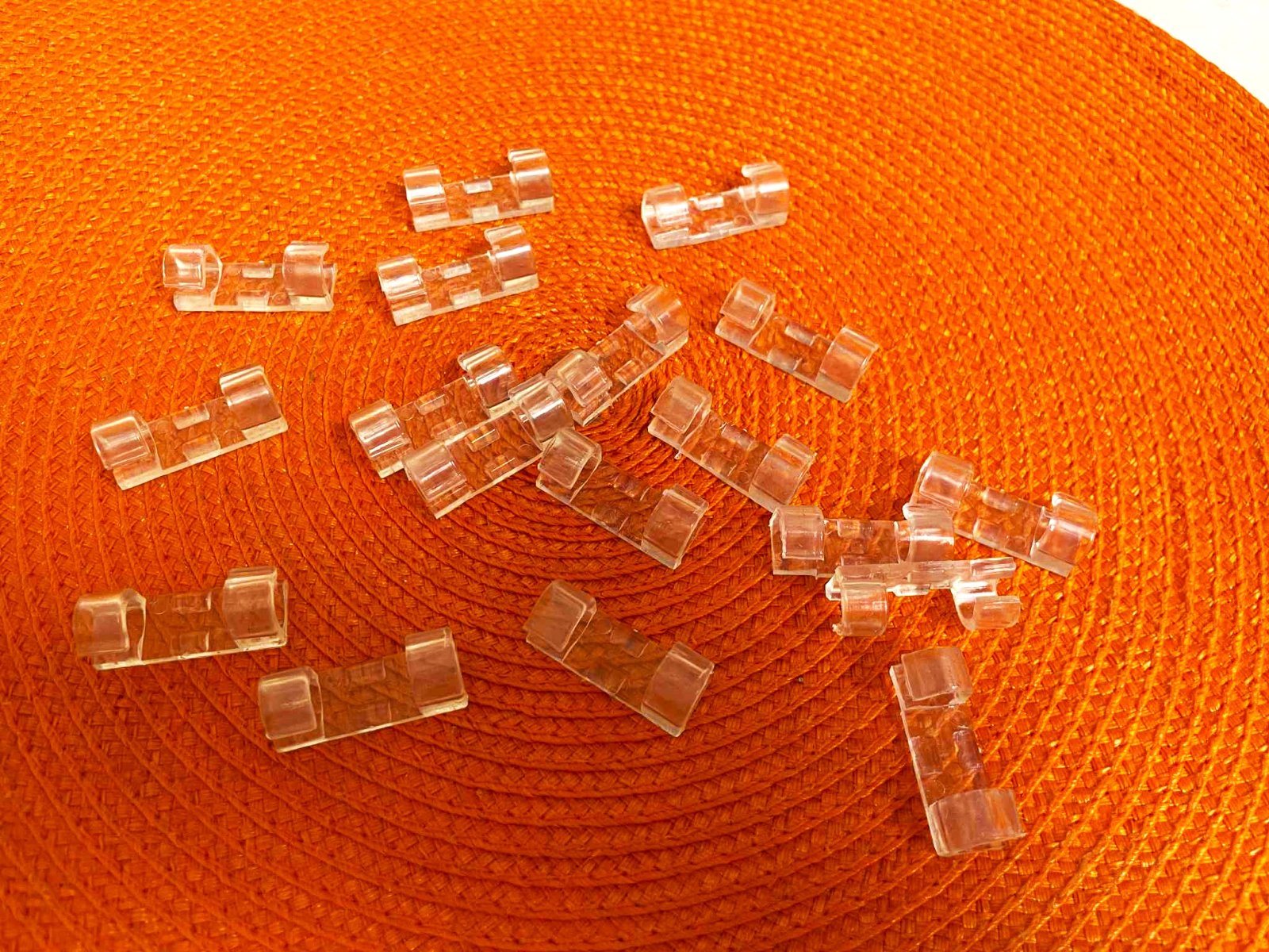 18 ks praktických plastových upevňovačov káblov,pekne vedú kábel popri stene napnutý,prípadne za televízorom,ale aj kuchynských elektrospotebičov