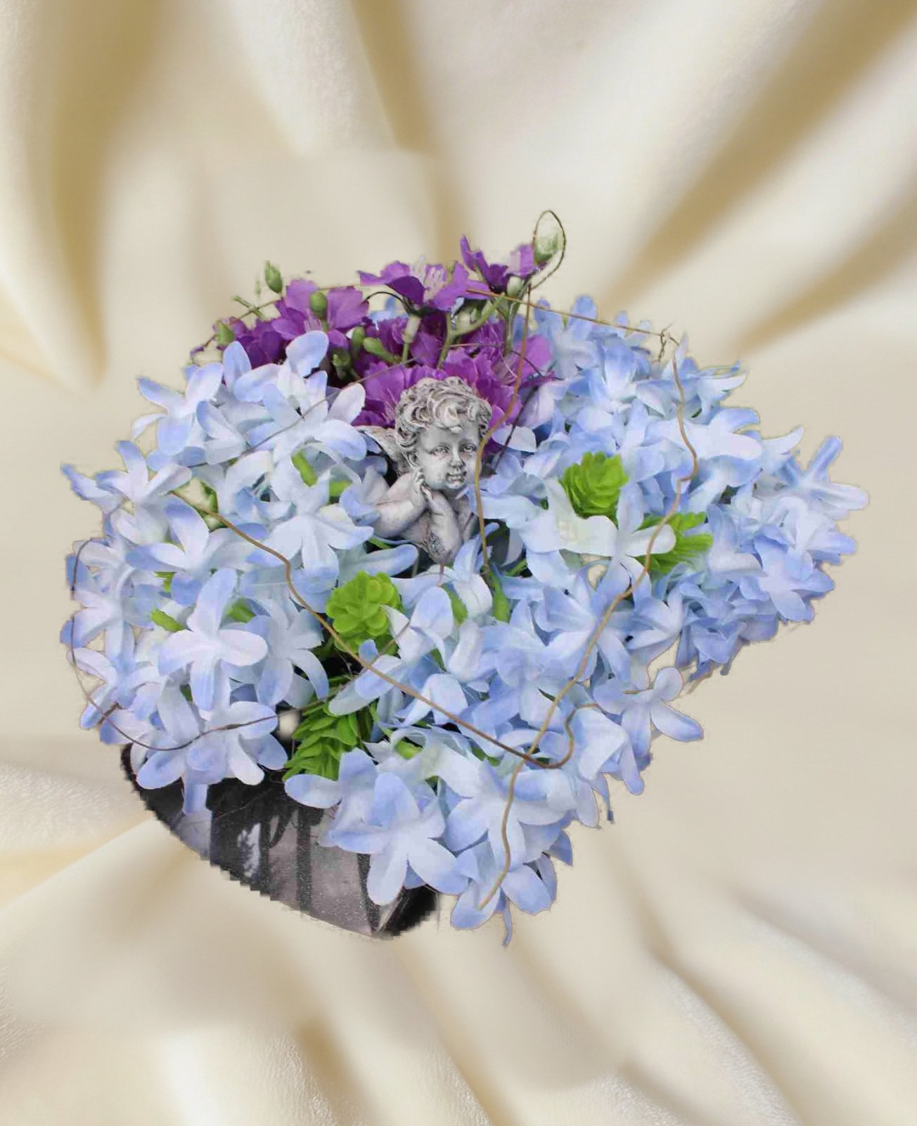 Aranžmánik na hrob s anjelom, modrý