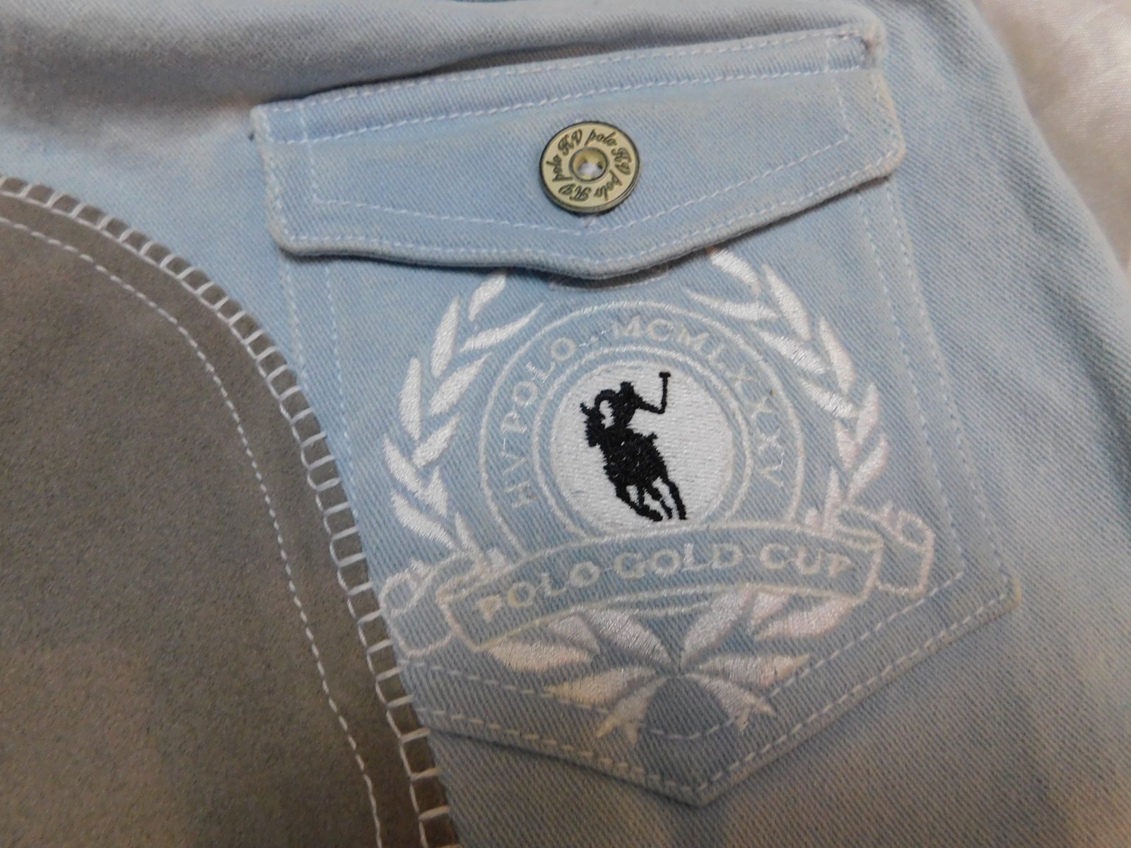 HV Polo dámske jazdecké strečove nohavice, pohodlné, v pase gumka,zdobené kontrastnými švami , dve klasické zadné vrecká. Zapínanie na 2 háčika.bežne znamky nosenia,super stav.PC120€. se35