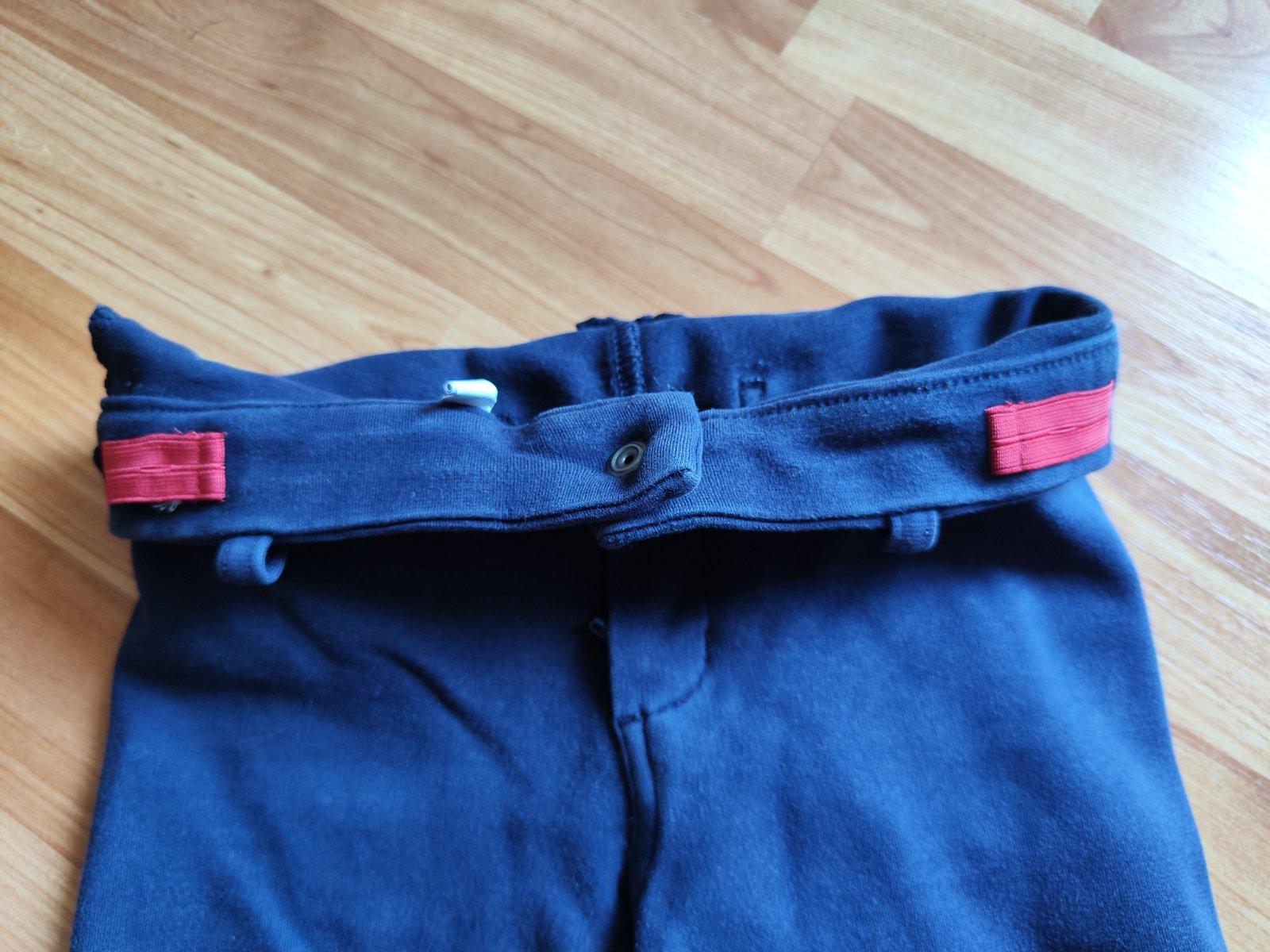 Veľkosť na 9 rokov. Rozmery: celková dĺžka 71 cm, od rozkroku 54 cm, šírka v páse 27 cm x 2.