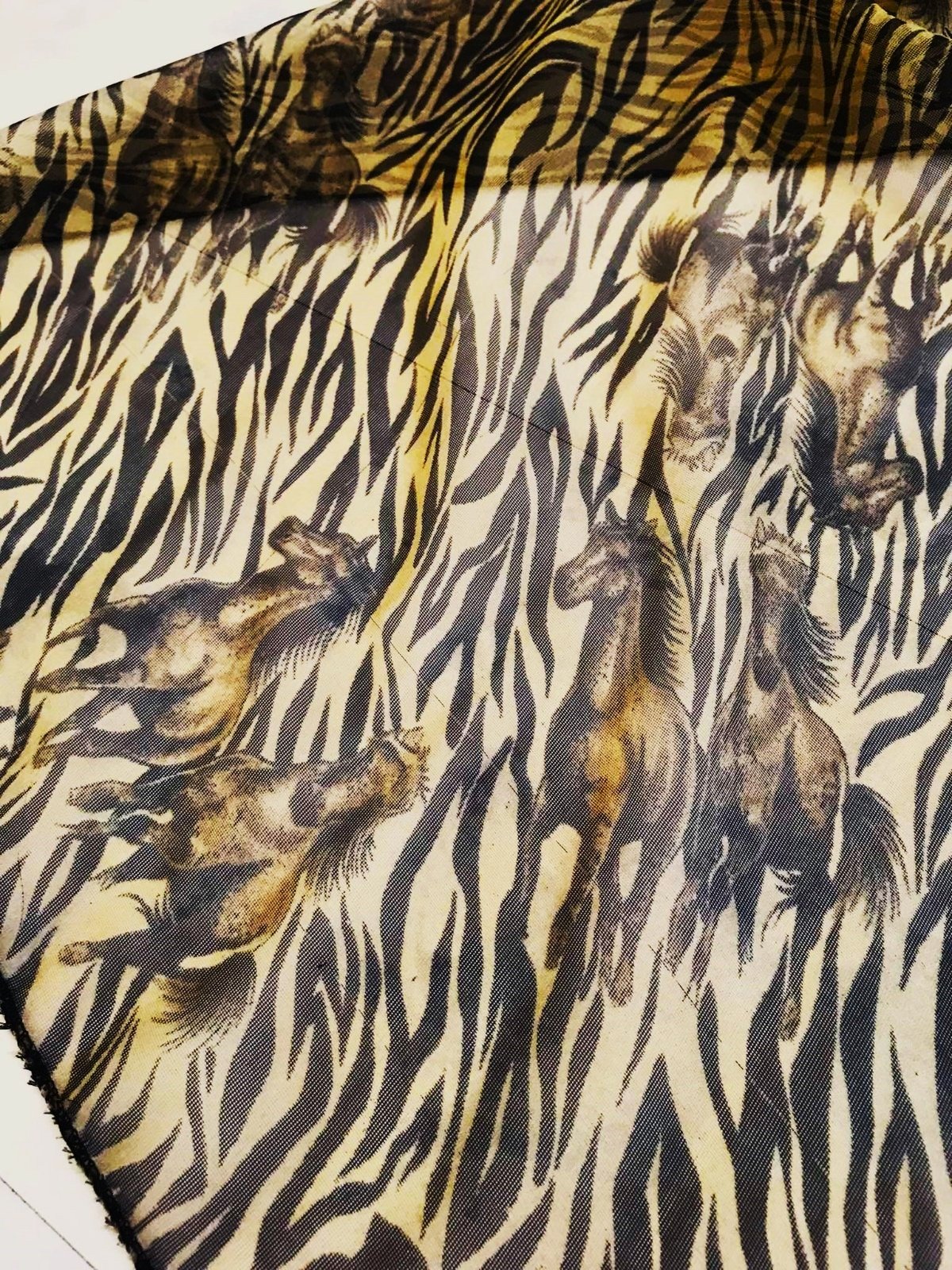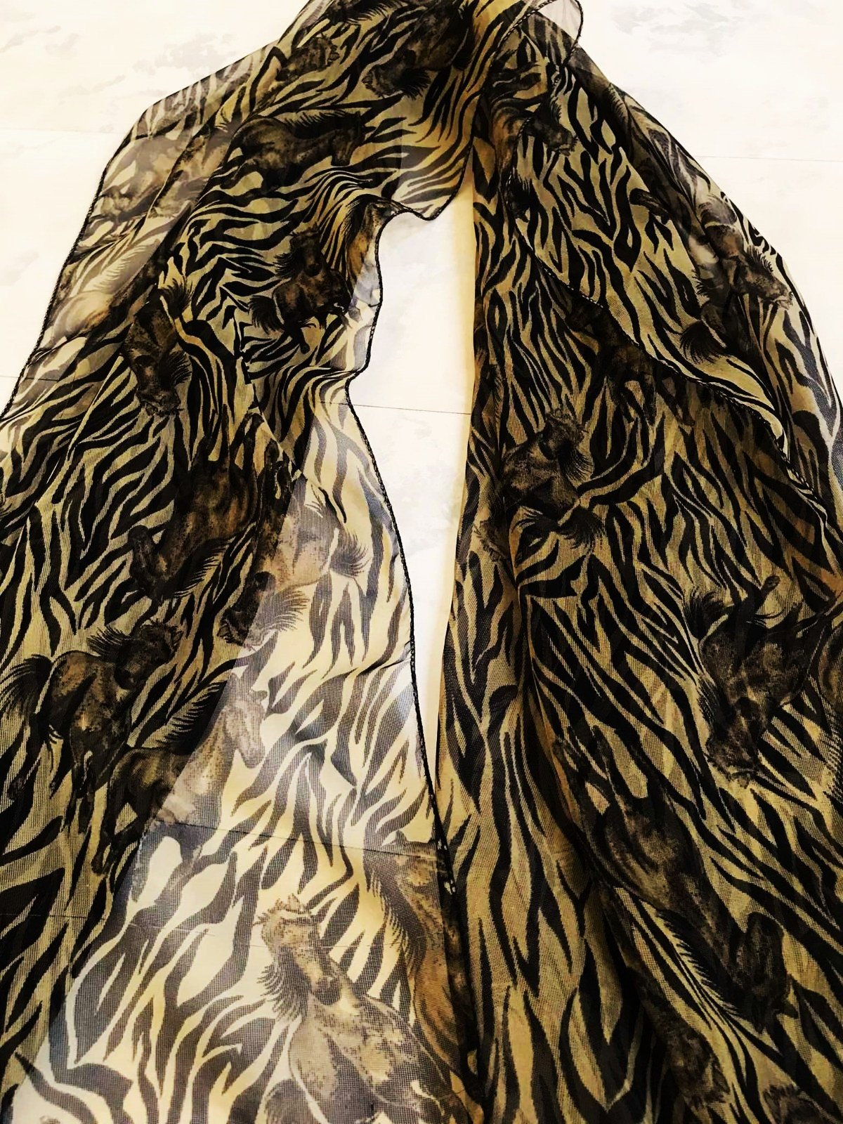 netuctová šatka s kresbou koní,tenký jemnučký materiál - jemne priesvitný &