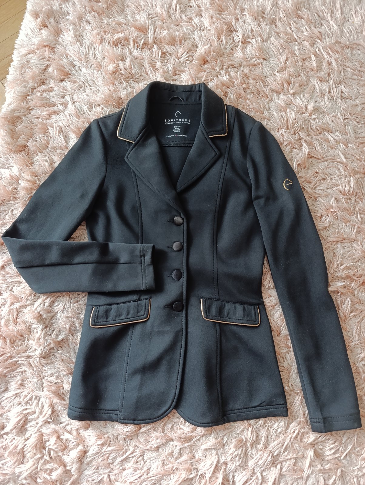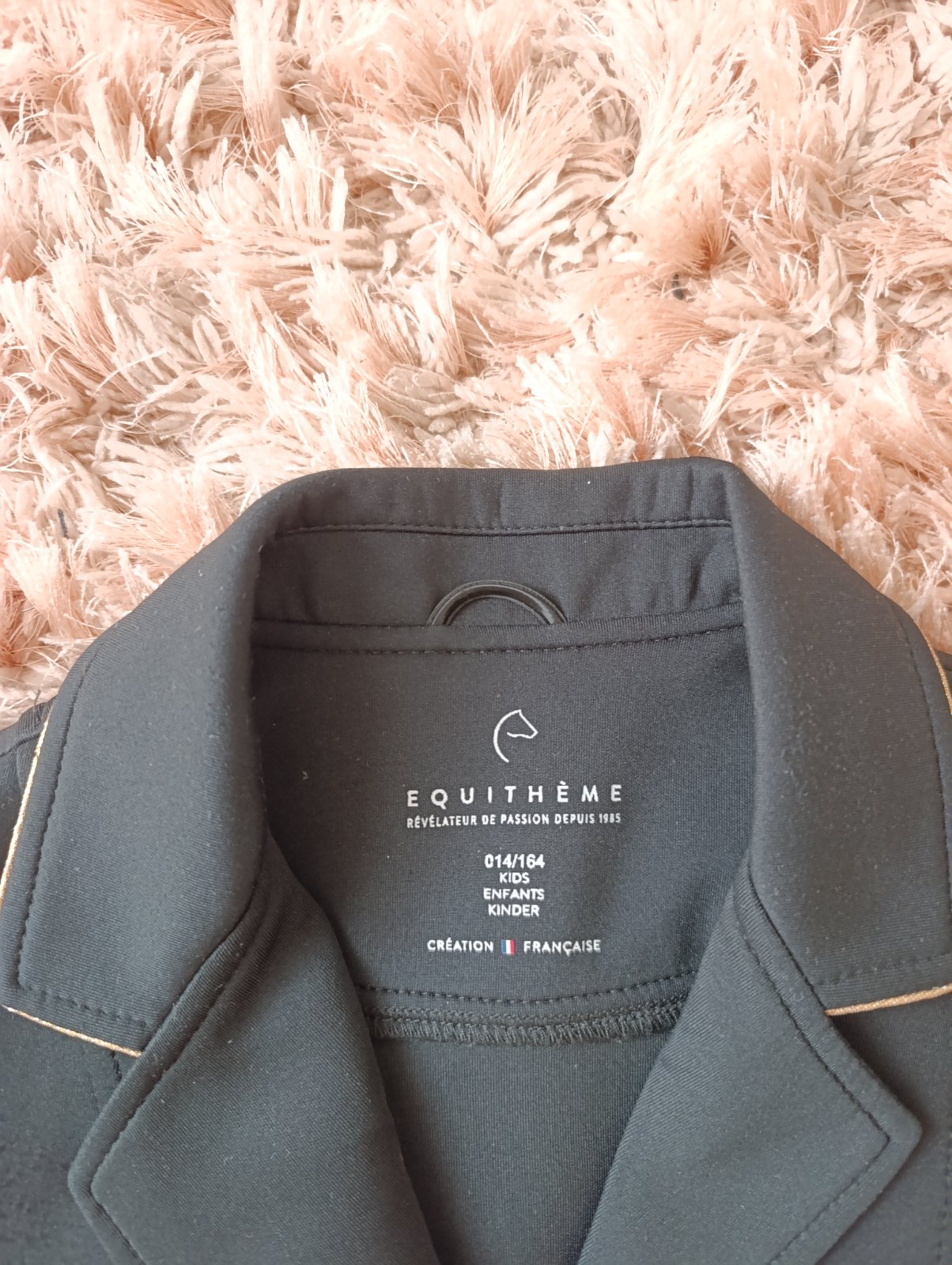 Predám minimálne nosené jazdecké sako francúzskej značky Equitheme, veľkosť 164, elegantná čierna farba so zlatým logom, elastické a príjemné na jazdenie. Cena 45 eur, preferujem osobný odber v Bratislave.