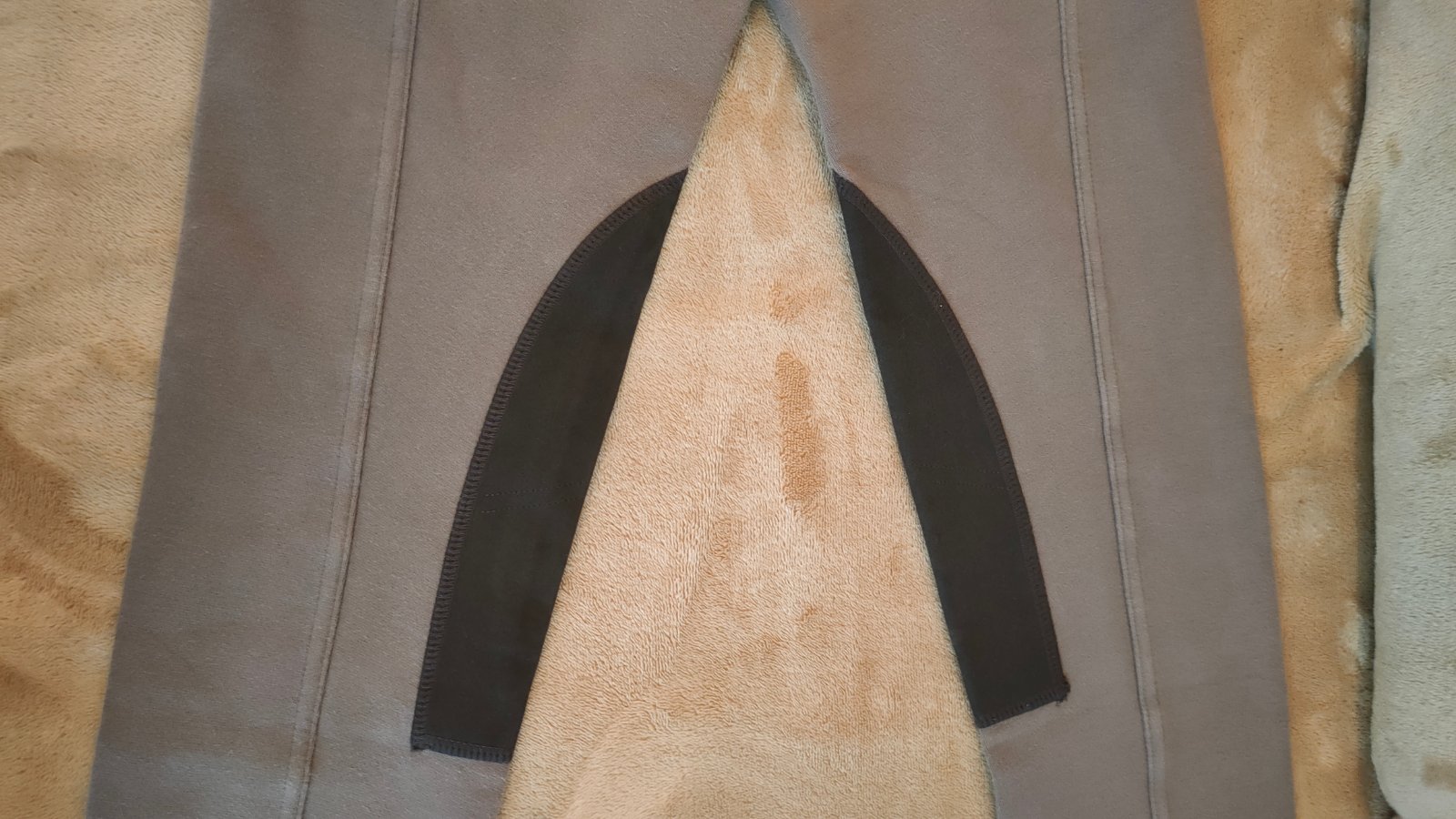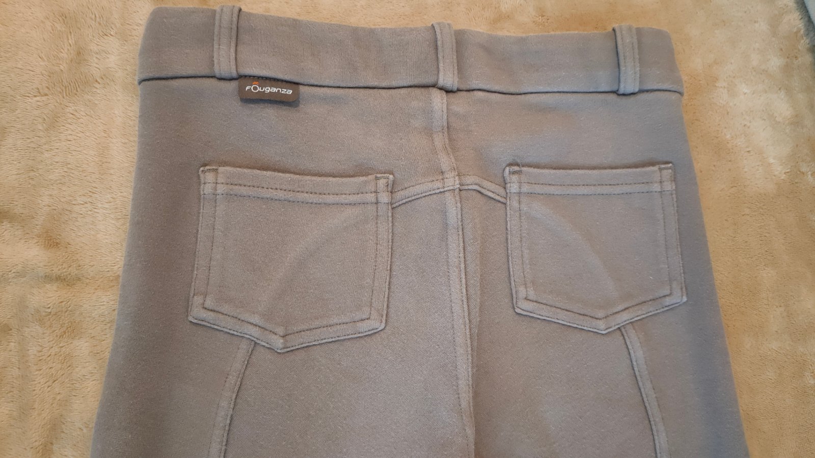 Používané nohavice na jazdenie,pružné, znaky používania.