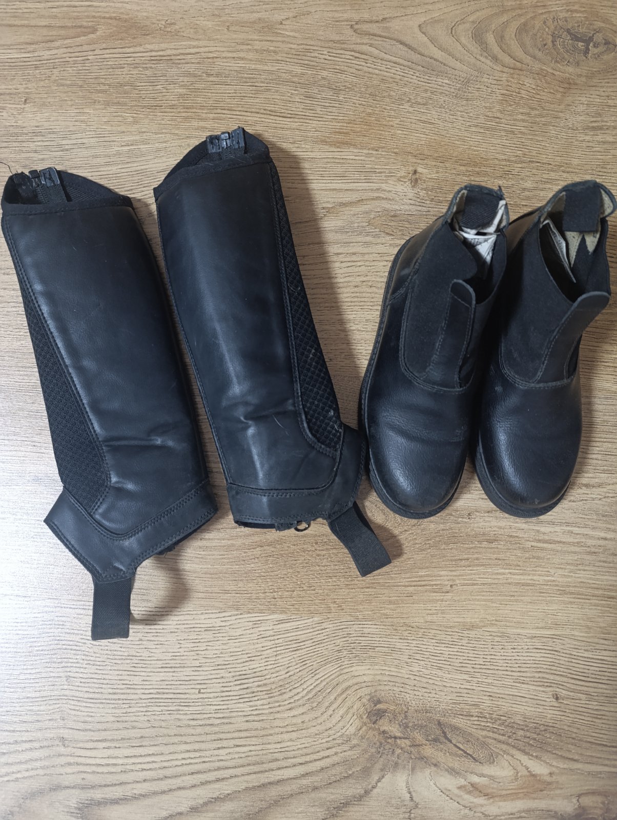 Predam 3/4 roka pouzivane jazdecke topanky z umelej koze vo vybornom stave ( pouzivali sa 1x do tyzdna) a jazdecke čepsy (koze) zakupene v Decathlone tiez vo vybornom stave.