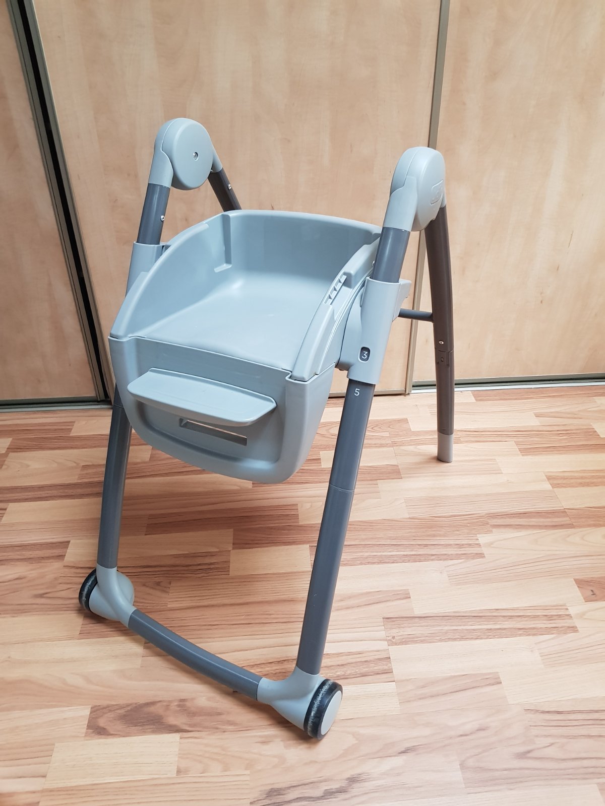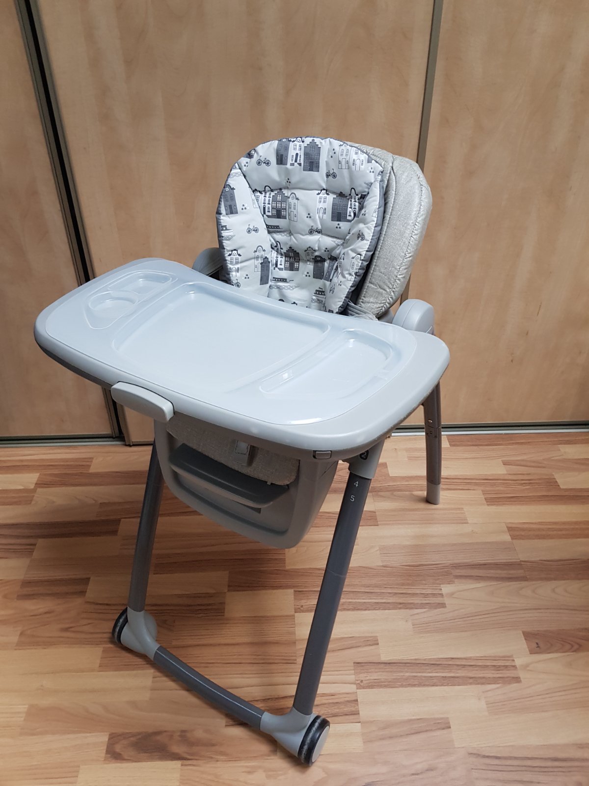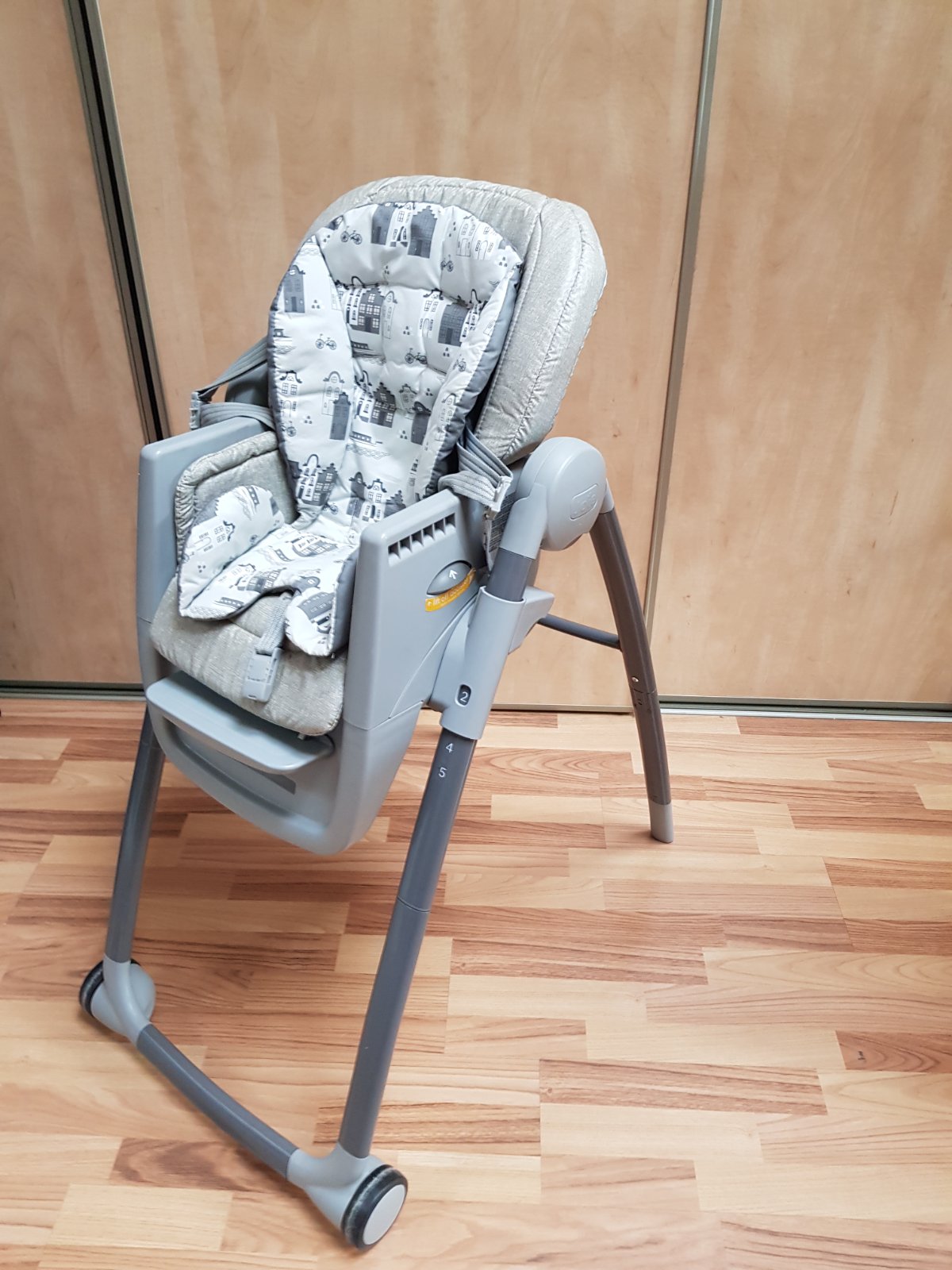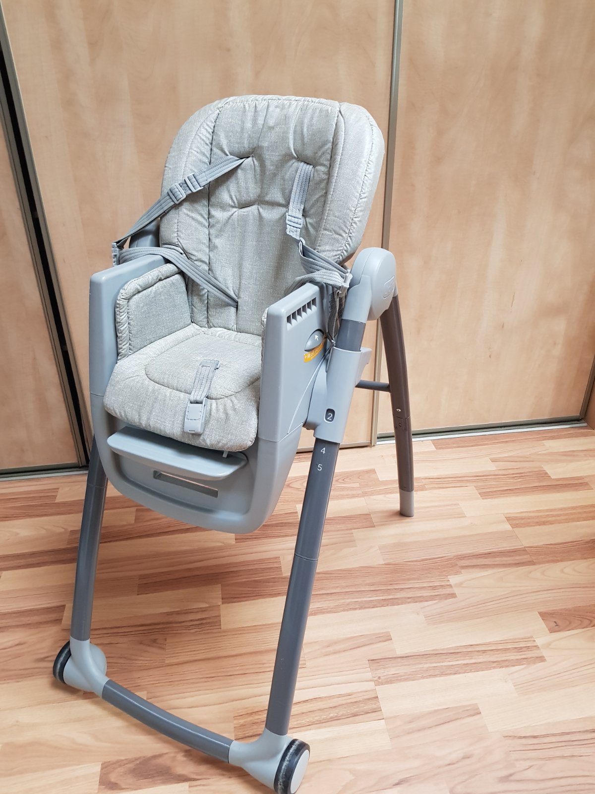 Top stav. Kupovaná 12/23. Po 1 dieťati. Skladna, polohovatelna. Da sa zasunut aj k stolu ked je uz dieta väčšie. Komplet príslušenstvo. Original krabica.
