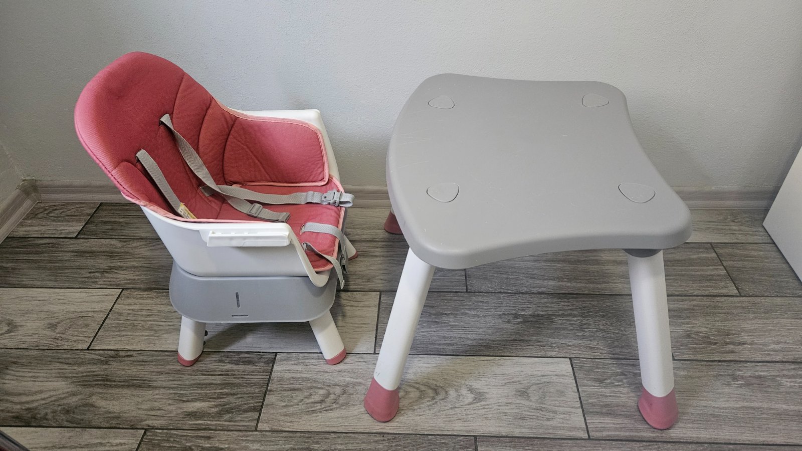 Predám stoličku s nosnostou do 15kg, poťah z eko-koze, široká nastaviteľnosť, predné kolieska, prakticky spodný kos, odolný kovový rám, opierka noh, odnímateľná tacka.