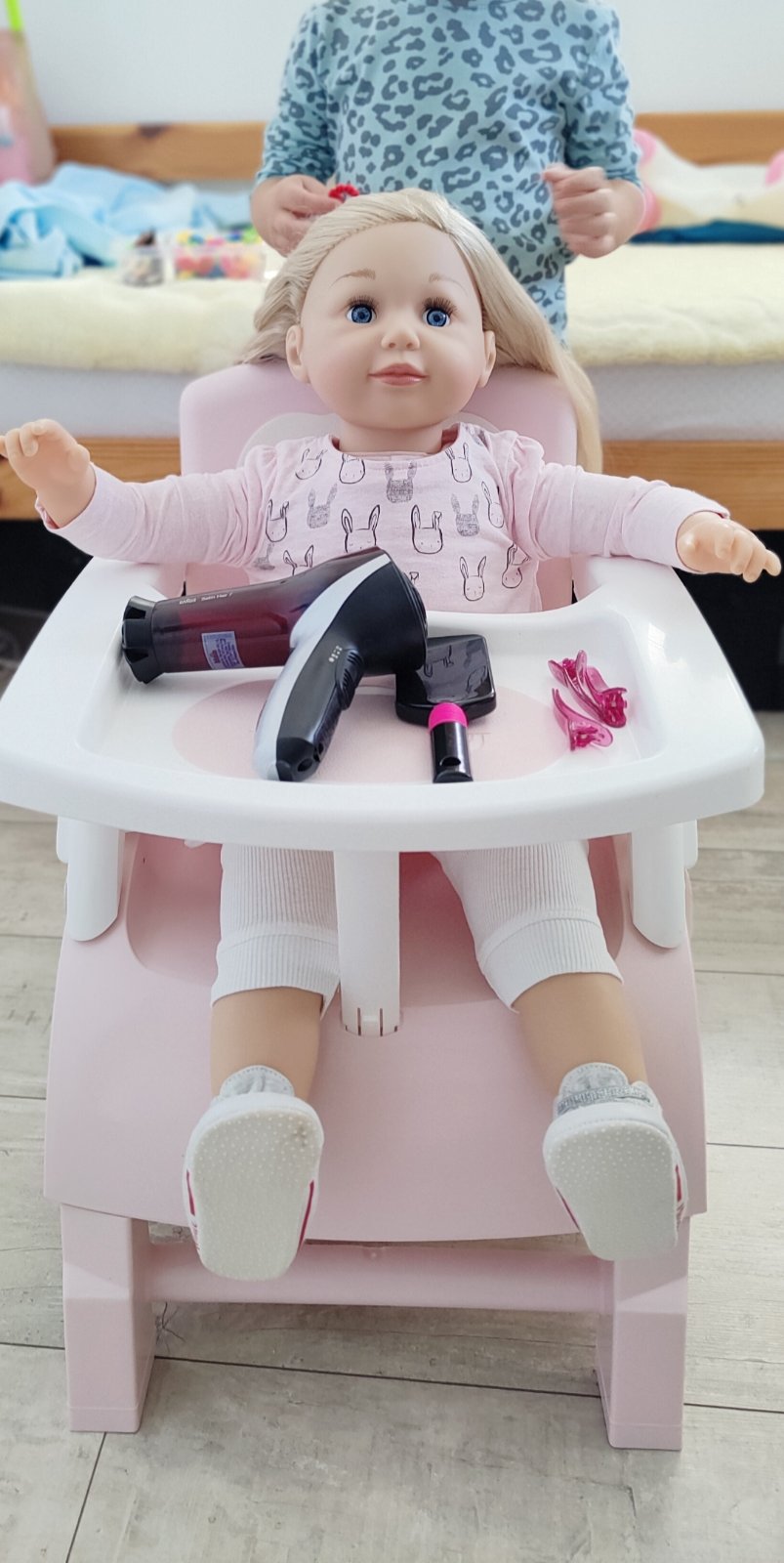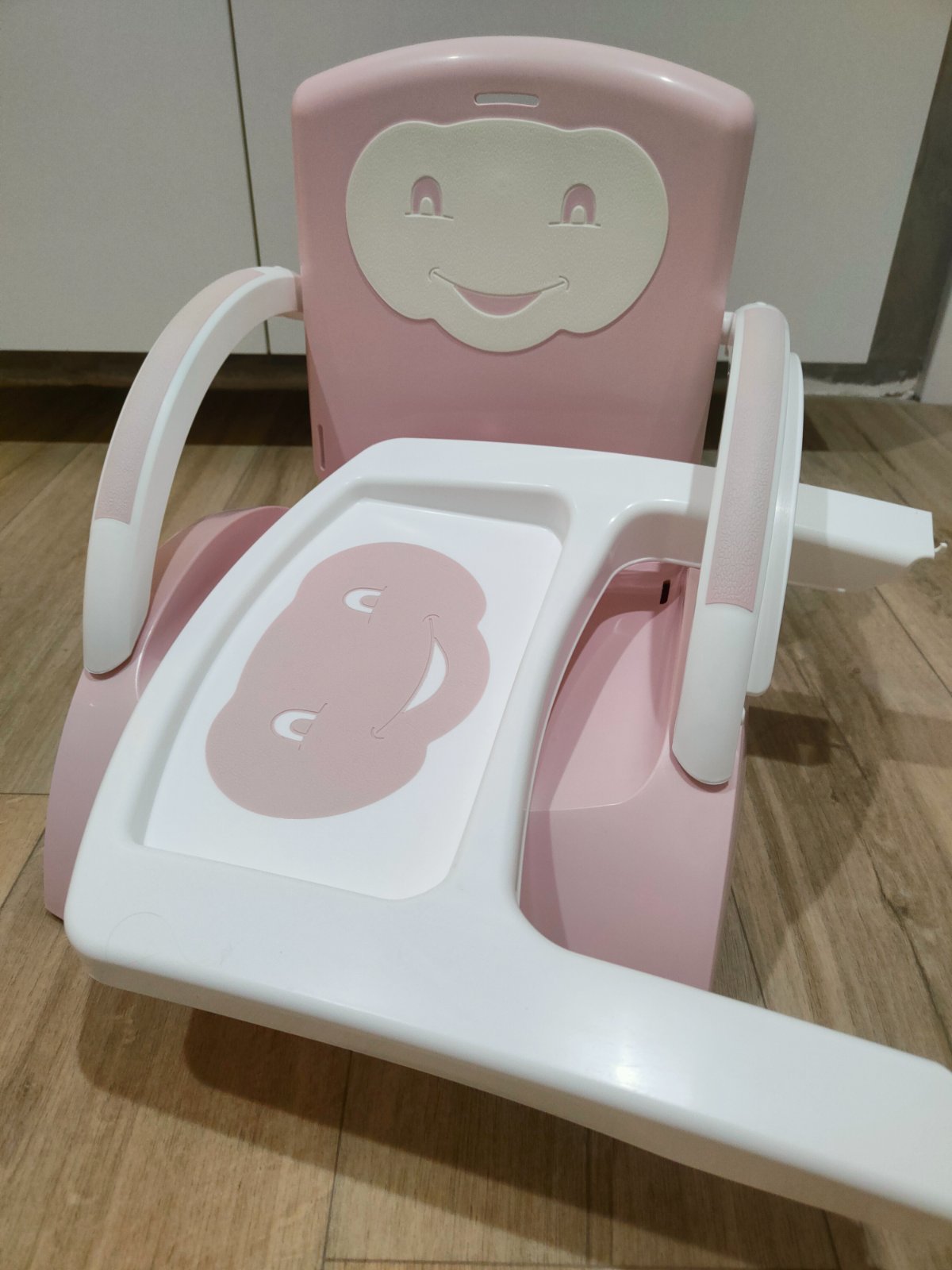 Bežné známky používania, ale stále v 💯 stave 😊 úžasná vec hlavne do menších priestorov, kde vám veľká jedálenská stolička zaberá veľa miesta. Túto jednoducho upevnite pomocou pásov na dospelacku klasickú stoličku a dieťa sedí s vami pri stole 😊