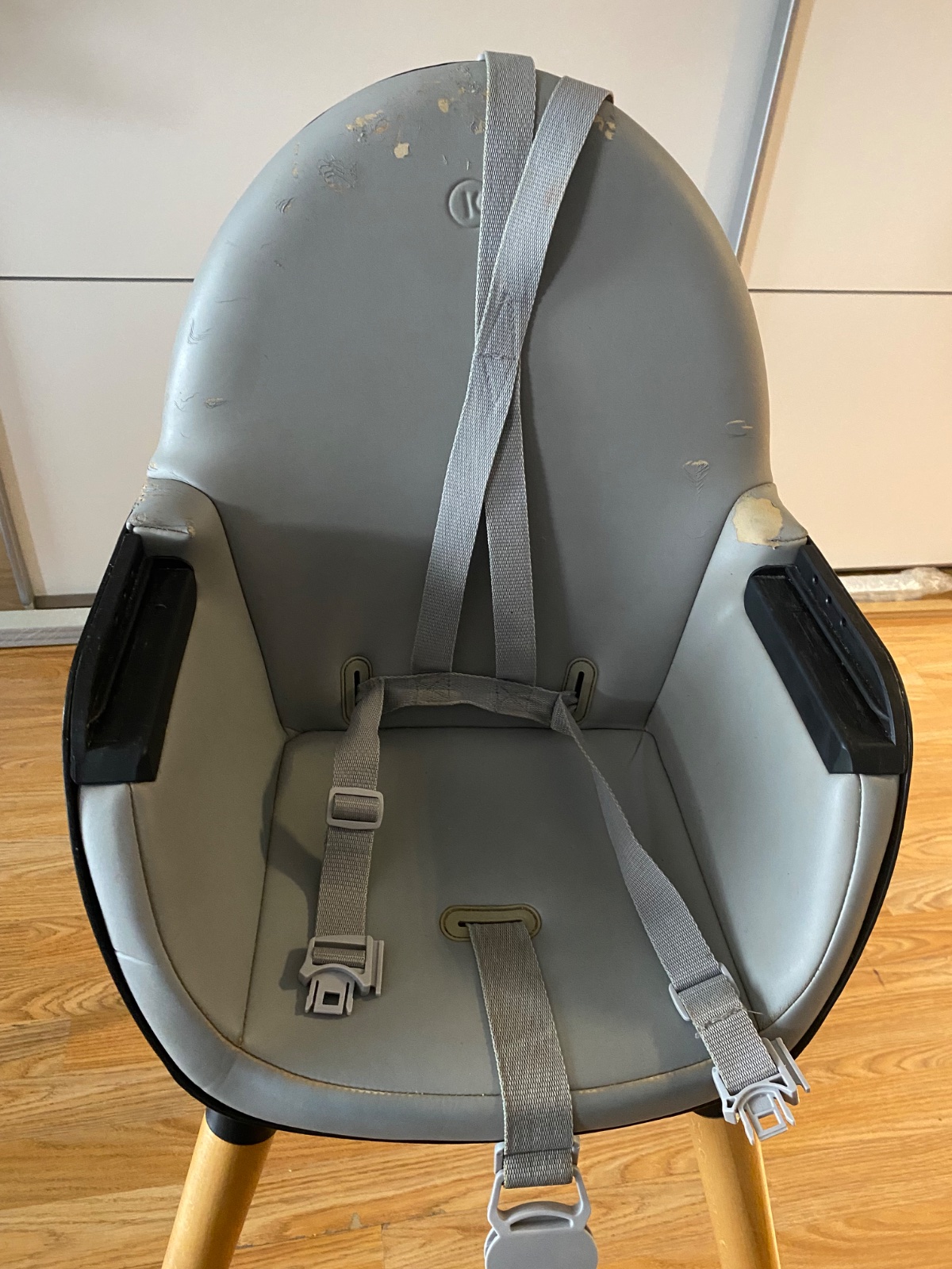 Jedálenska stolička KinderKraft, Celá stolička veľmi zachovalá, jediné poškodenie je na koženke( je ošúchaná) vidno na foto najlepšie prečaluniť alebo použiť návlek. Inak na funkčnosti jej to neuberá. Cena 30€