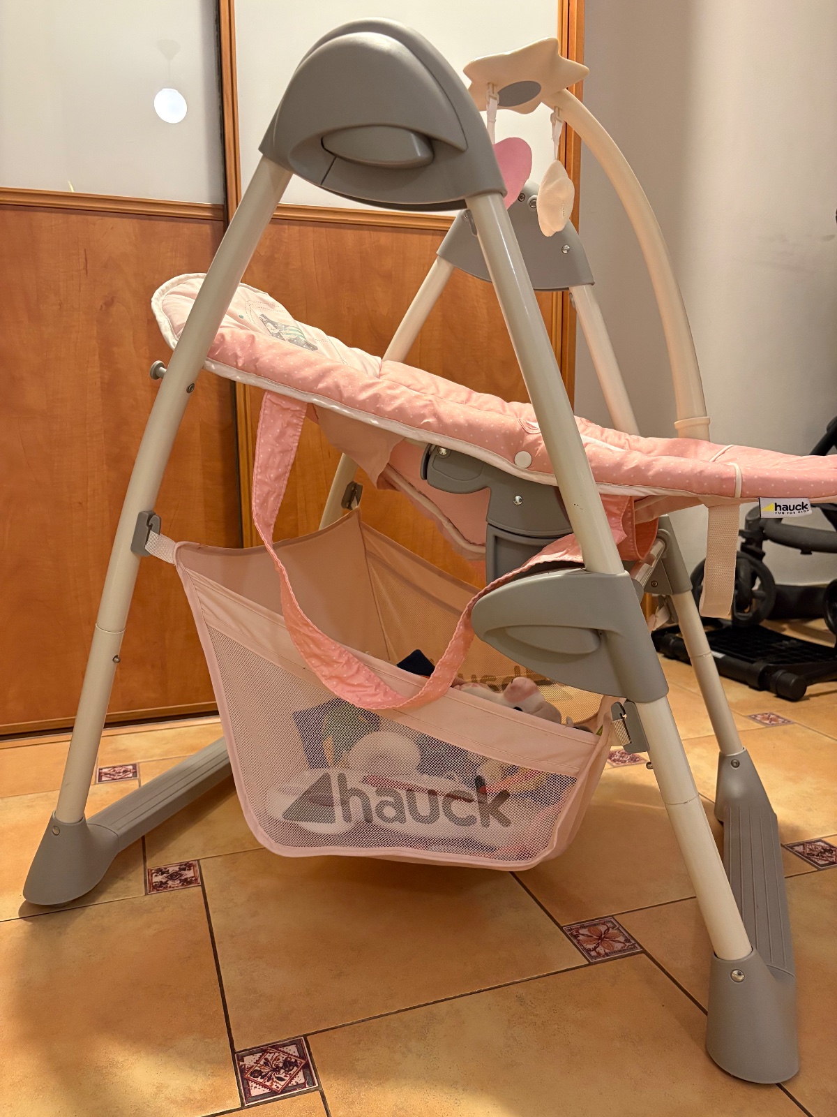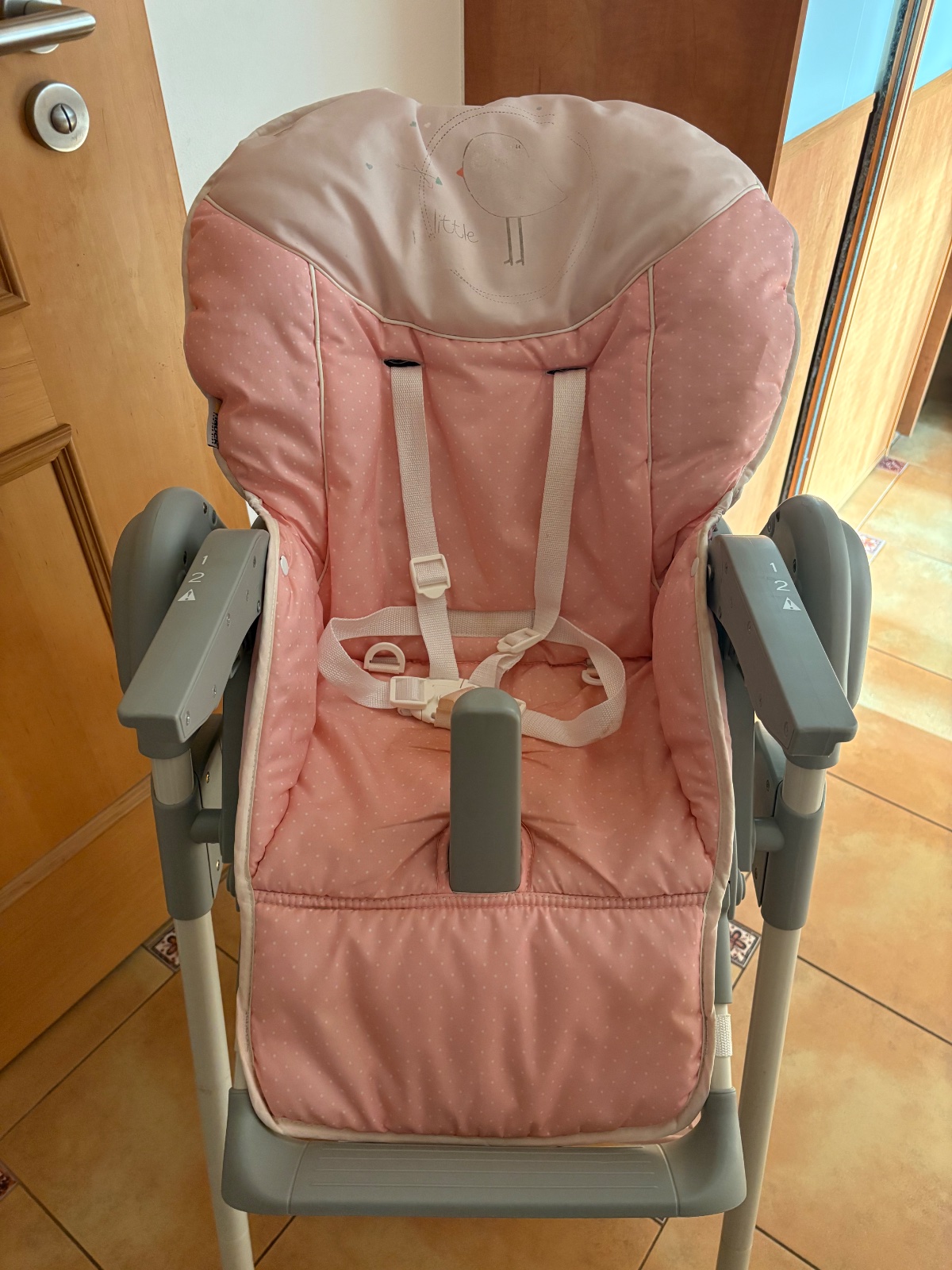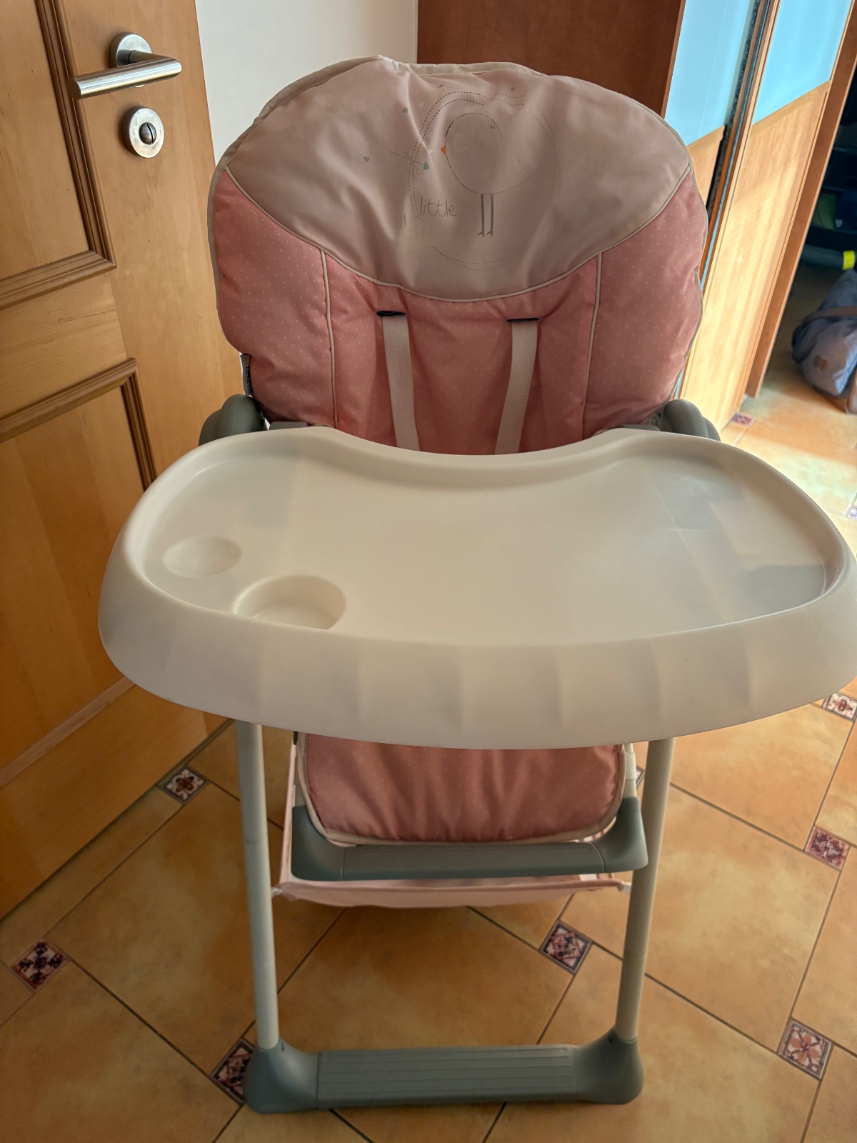 Predám detskú jedálenskú stoličku na kŕmenie Hauck sit n relax. Obsahuje stoličku na kŕmenie, polohovacie kresielko s ramenom na hračky a priestranný košík pod stoličkou, veľmi praktický. Ružová farba. Poťah bol praný, takže obrázok je vyšúchaný. Inak v dobrom stave.