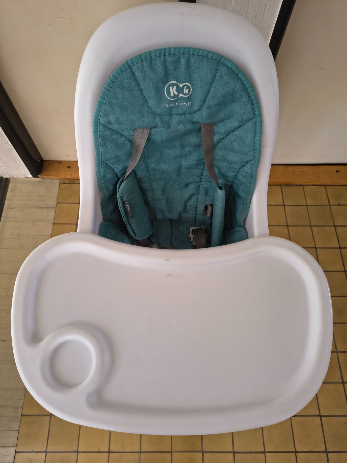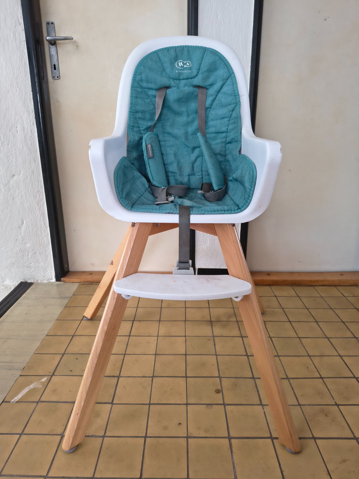 Detská jedálenská stolička Kinderkraft 2v1, používaná, bežné známky opotrebovania na poťahu. Ľahko sa udržuje a čistí. K dispozícii sú vysoke aj nízke drevené nohy, pultík a 5-bodový bezpečnostný pás.