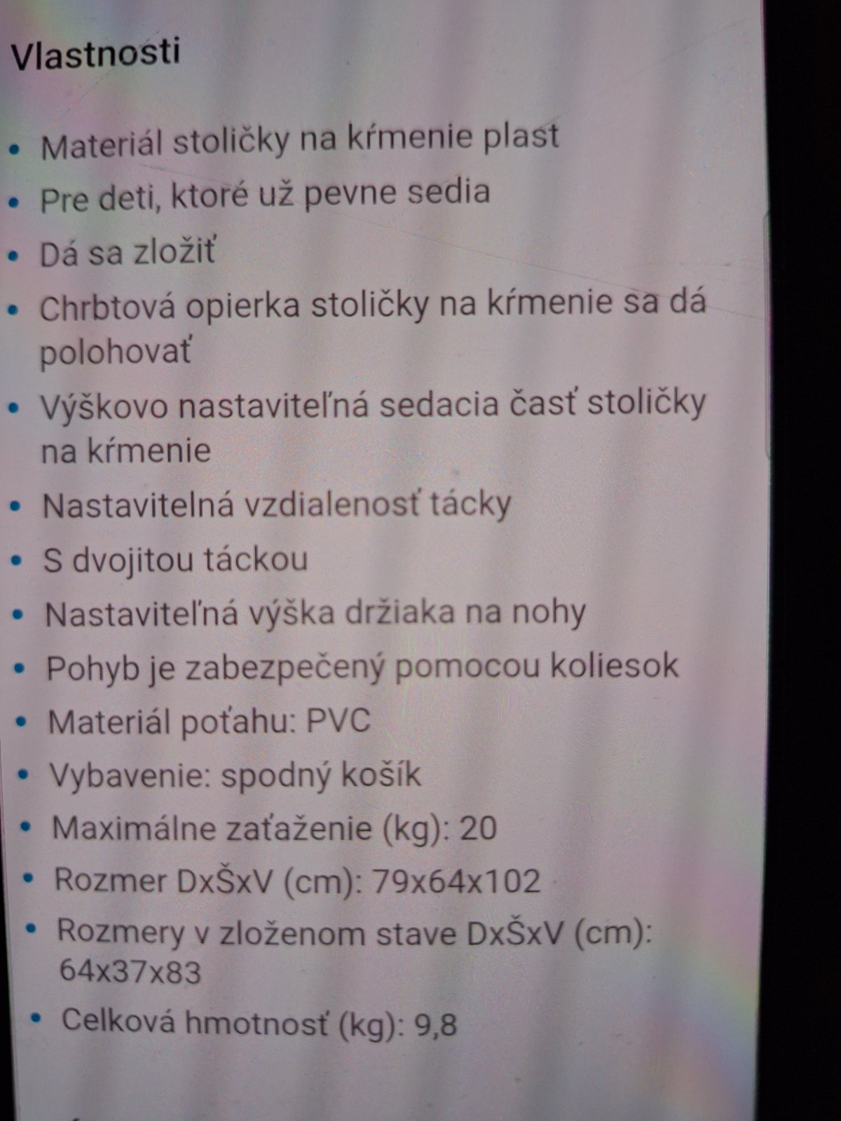 Predám veľmi dobrú detskú jedálenskú stoličku Touragoo Candy Plus.Ľahko umývatelná, skladná.Bez poťahu.