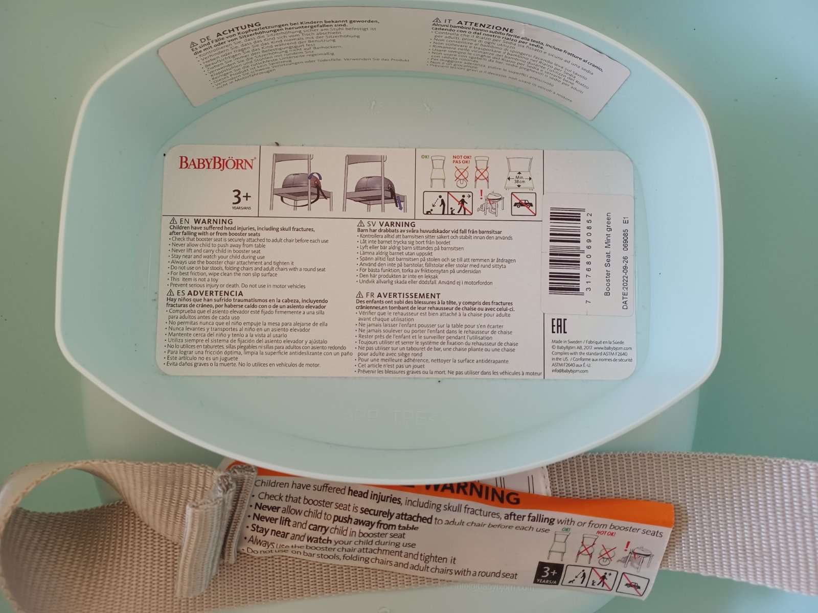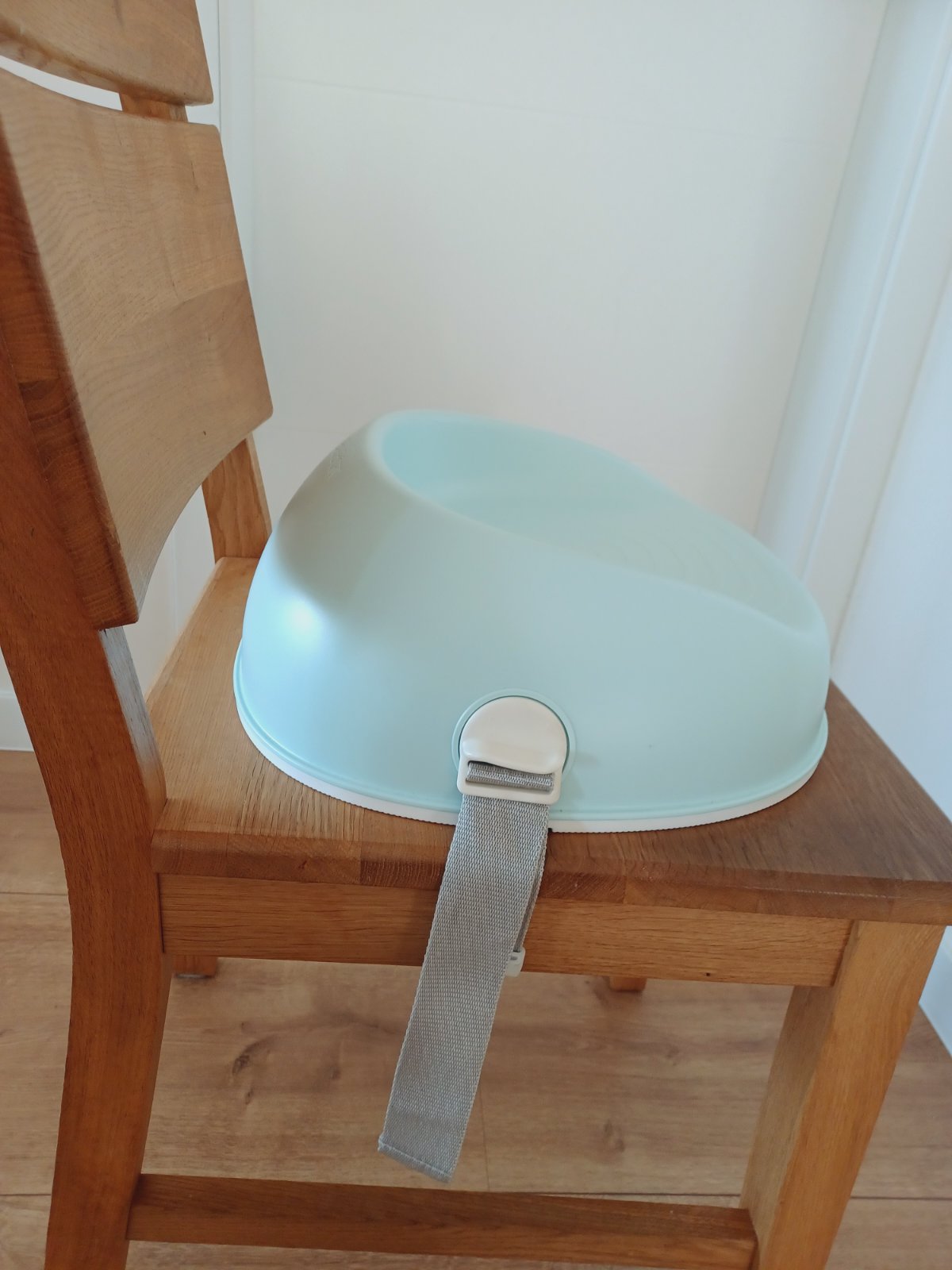 Top stav, značka Babybjörn, je ako nový. Je to kvalitný plast, ľahko sa pripne na stoličku, dcérka ho používala do 5 rokov, lebo s ním lepšie dosiahla na stôl. Nosnosť bude mať určite aj 30 kg (nie je uvedené). Farba krásna pastelová, vhodná aj pre chlapčeka. Nový stojí okolo 50 Eur.