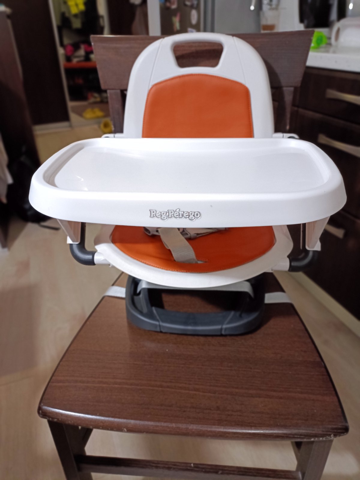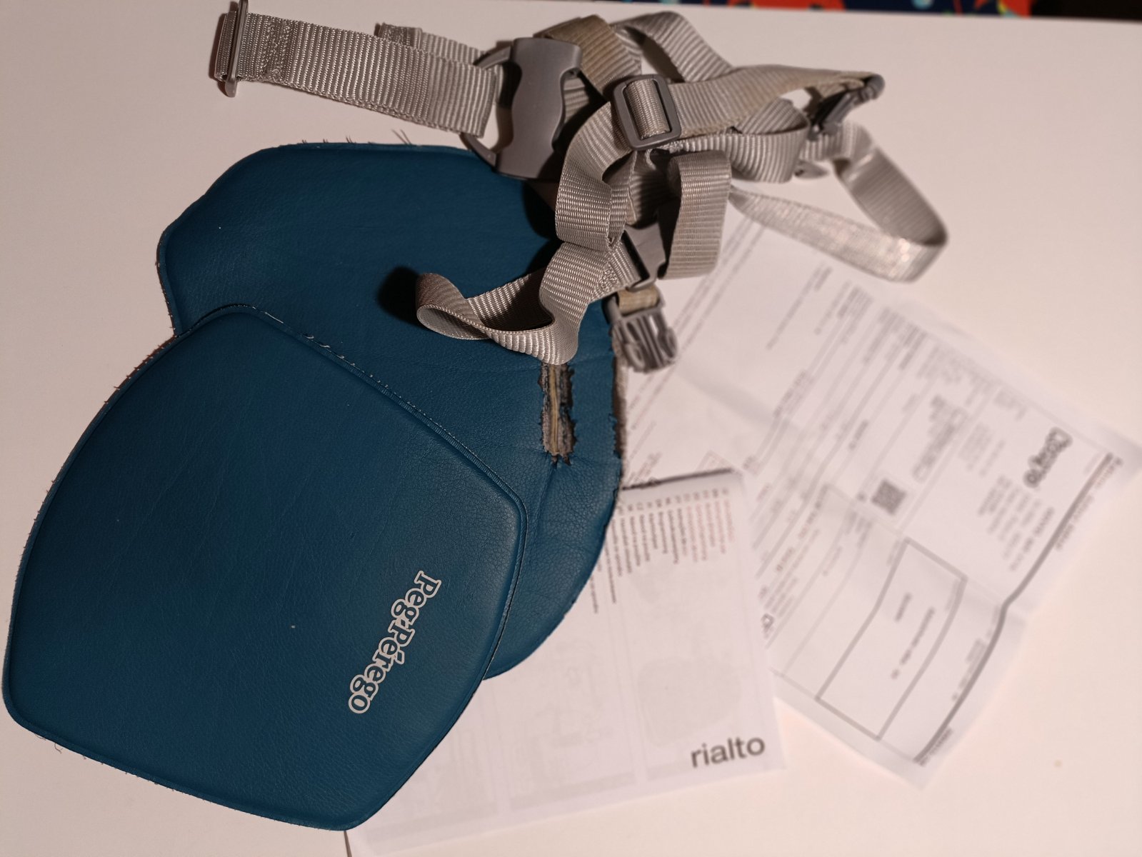 Cestovná stolička Peg Perego Rialto v plne funkčnom stave. Pôvodne v tyrkysovom prevedení, ale to sa začalo olupovať, tak sme dali ušiť nové oranžové polstrovanie. Takisto su nové aj popruhy, keďže sa zlomil jeden cvok. Pôvodné polstrovanie aj popruhy pribalím, dajú sa použiť ako náhradné.