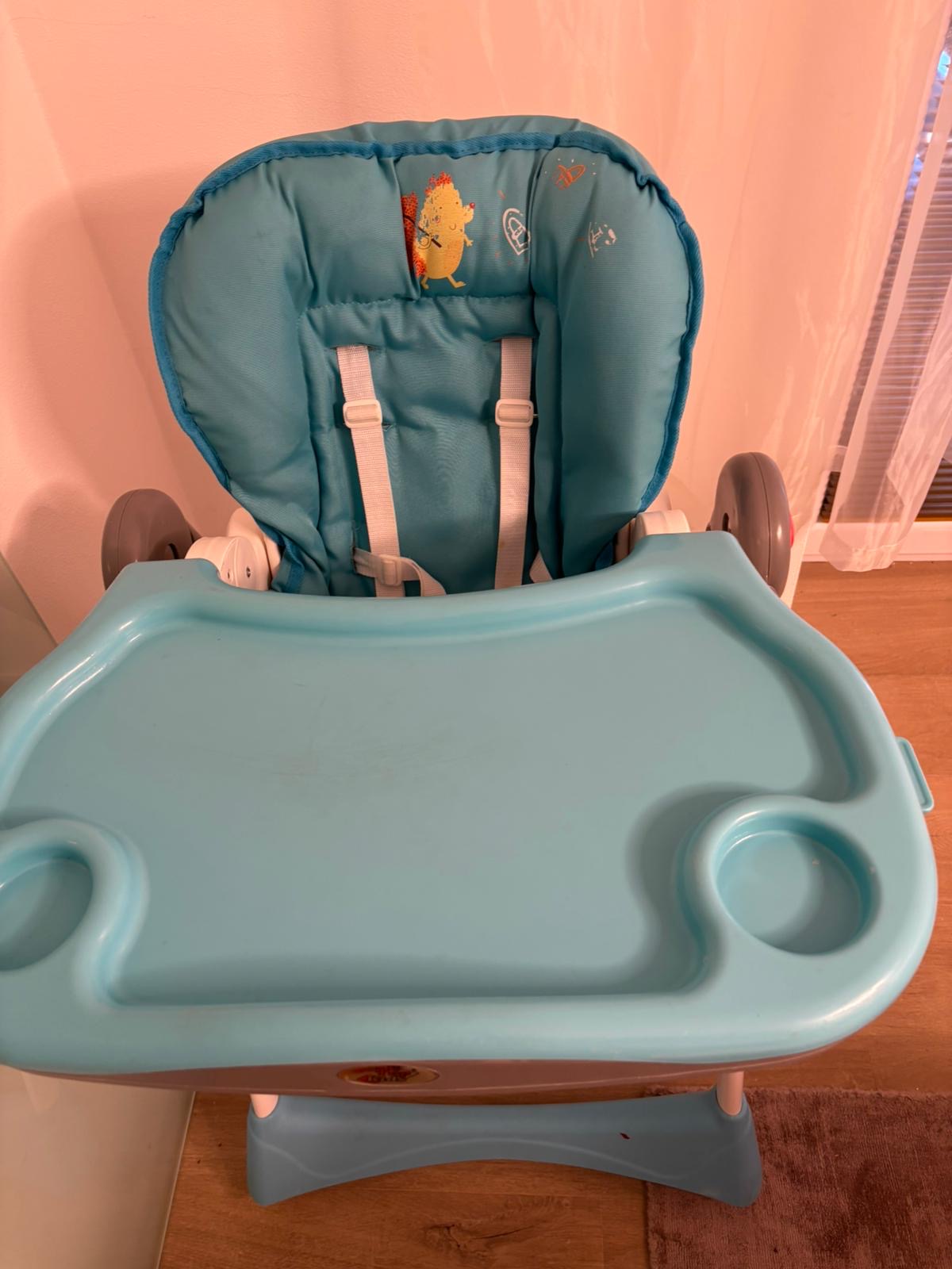 Predám stoličku na kŕmenie značky Top kids. Využívali sme ju u starých rodičov. Bola malo pouzivana. Je to perfektná stolička s funkciami. Bábätko je v nej bezpečne zafixované popruhmi, stolička sa da polohovať do lahu aj do sedu, da sa nastaviť úroveň výšky stoličky od zeme až hore, da sa zabrzdiť, poťah sa da oprat a takisto pod stoličkou je taška na hračky, stolík je odnímateľný s 2 nadstavcami ( používali sme iba vrchný a to modrej farby). Všetko je odfotené.