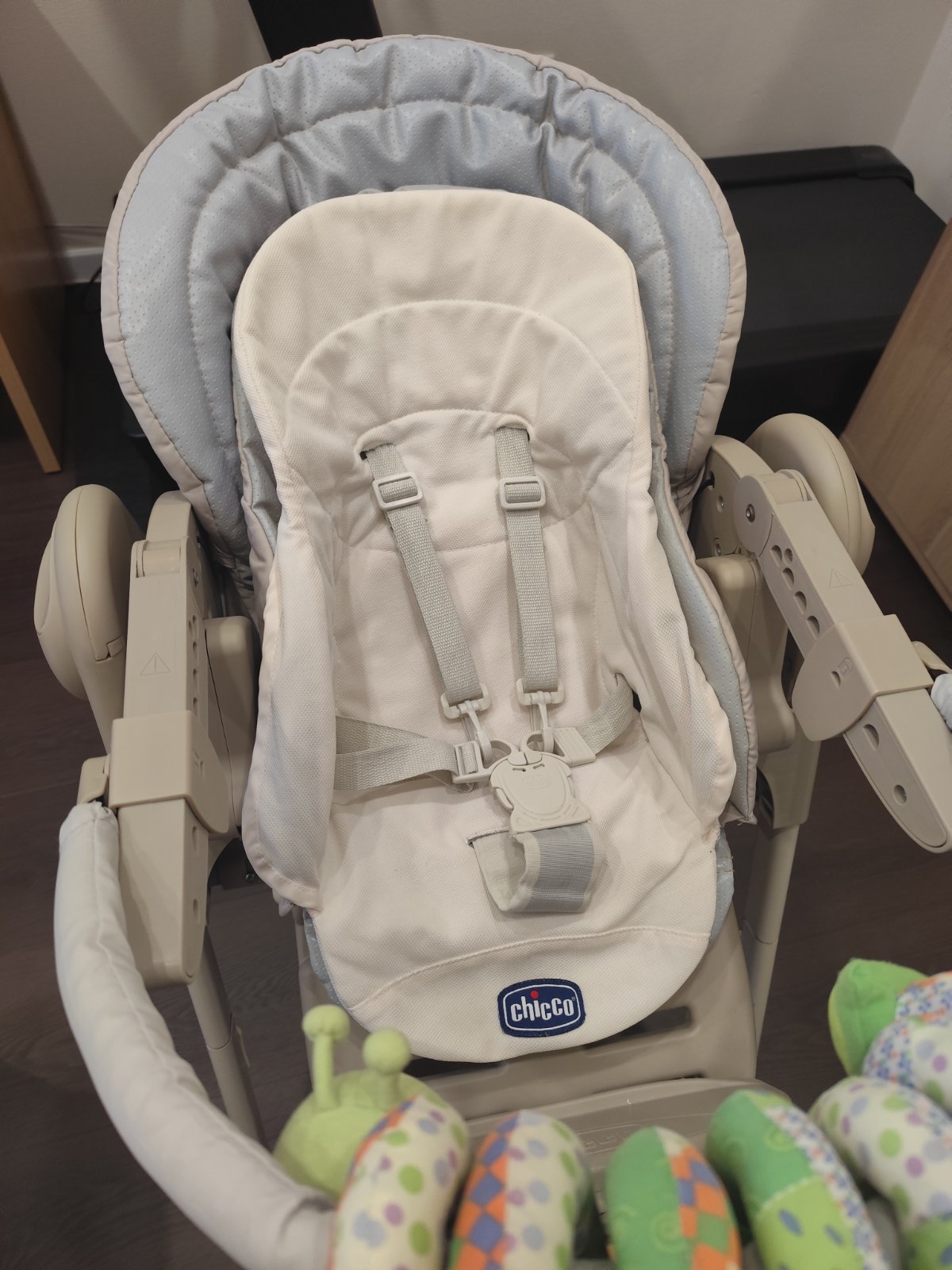 Predám používanú detskú stoličku/lehátko Chicco 3v1 - od narodenia do 3 rokov. V dobrom stave, plne funkčná, len estetické známky používania, spodná vložka trochu potrhaná (viď foto), vyčistená a súčasti vypraté.