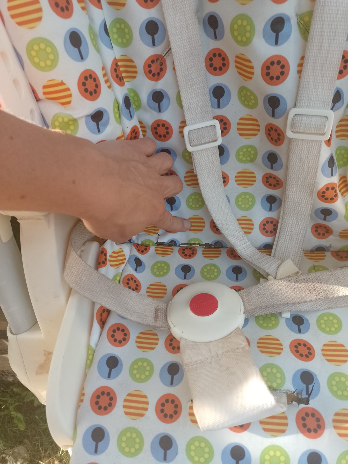 Stolička Chicco Polly v TOP stave s novým návlekom. Určená pre bábätká od narodenia (sklopenie do “poloľahu”) + výškovo nastaviteľná. Súčasťou je odnímateľný pultík. Pre bezpečnosť bábätka sú popru...