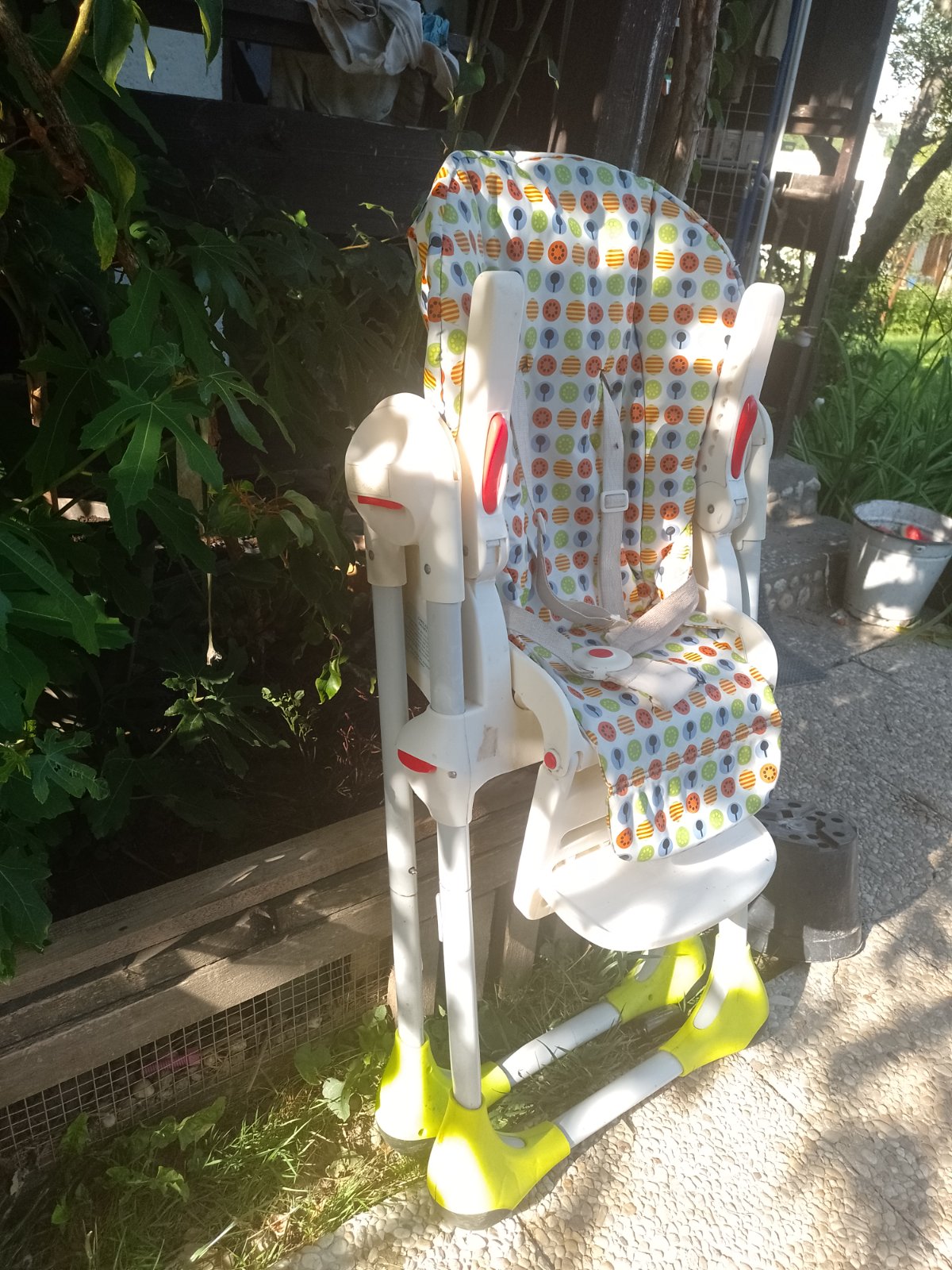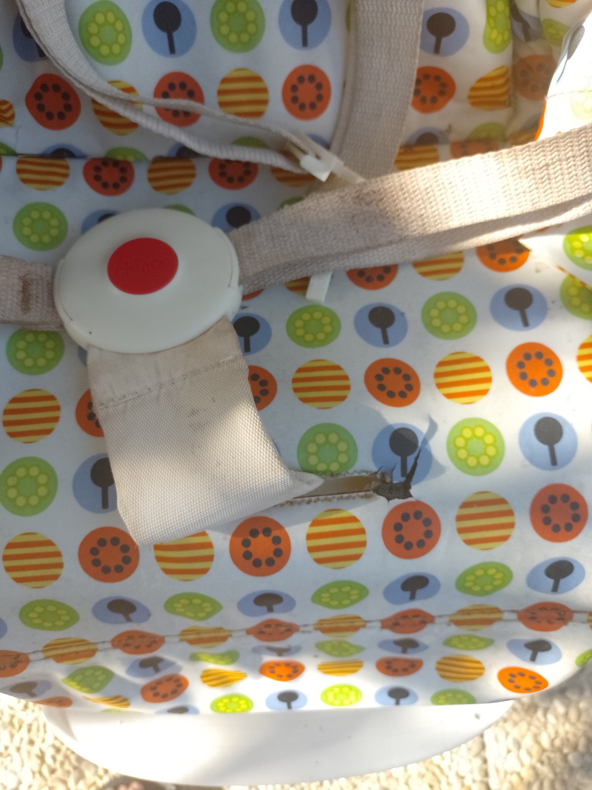Stolicka po 2 detoch, prasknuty pultik a miestami popraskany potah inak 100% funkcna. polohovatelna, od 1. prikrmov kedy babo moze lezat az po starsie deti, moznost nastavit vysku a prisunut ku sto...