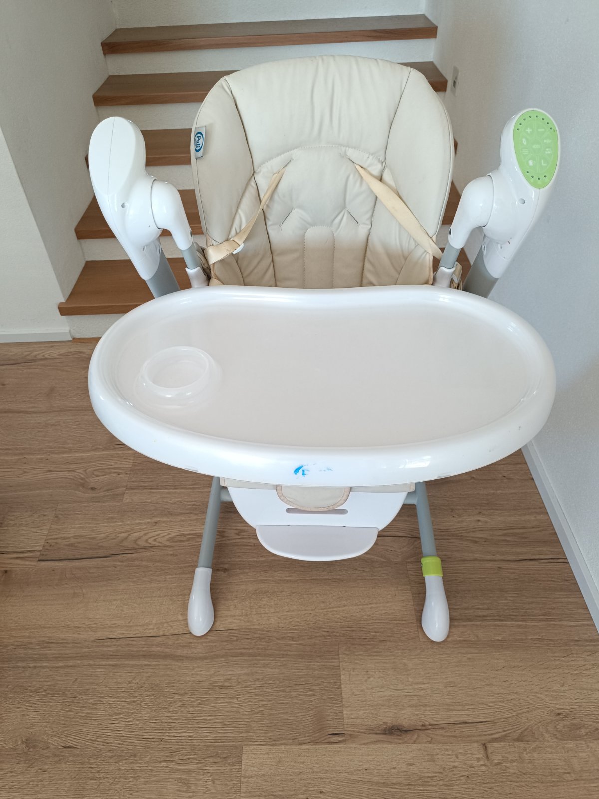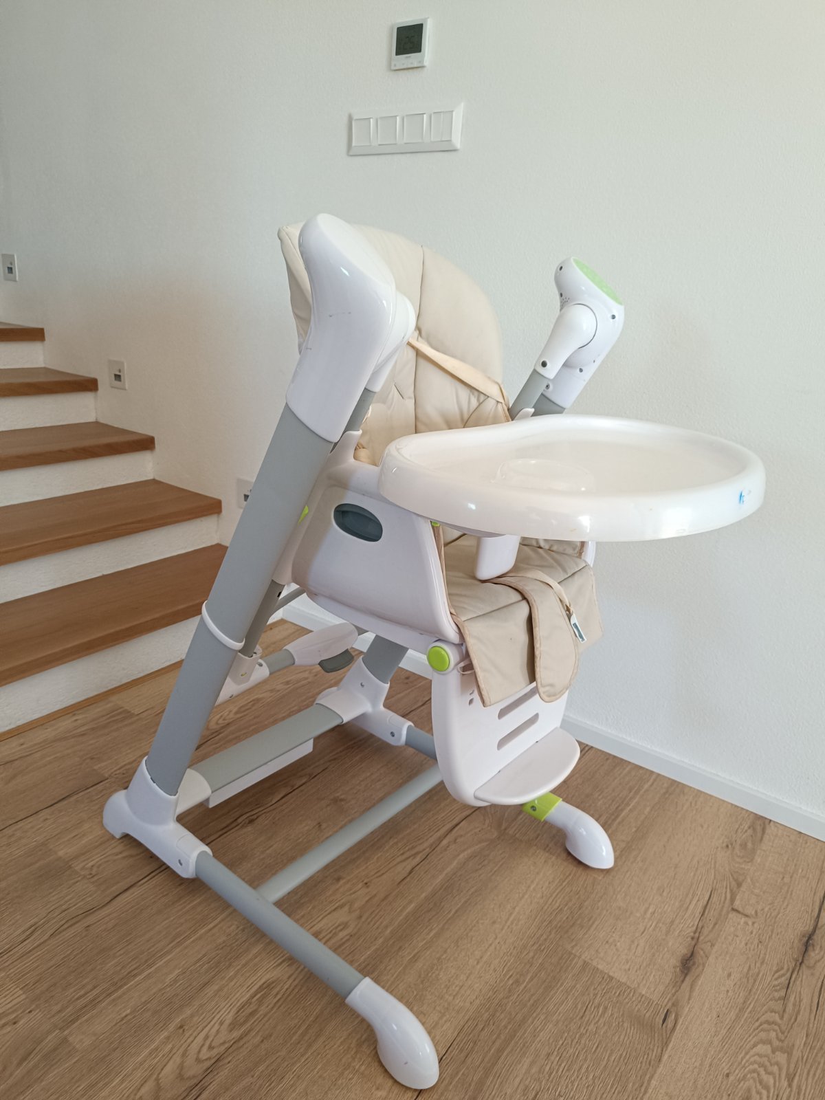 Pali design, používaná ale vo veľmi dobrom stave, všetko sa dá vyumyvat , oprať. Za veľkú výhodu považujem jej stabilnost, dieťa -ked aj sa v nej postaví nevypadne a stolička sa neprekoti ,vďaka stabilnej konštrukcii. Stolička sa sklopí a následne po zapojení kábla hra alebo hojdá bábätko. Možnosť napojenia USB a počúvania vlastných piesní. Vhodné od 6-36 mes., poťah a popruhy sú oprate. Dajú sa kúpiť lahko aj náhradné. V mieste zapínania je poťah trošku popraskaný - používaním. Pôvodná cena 300€.
