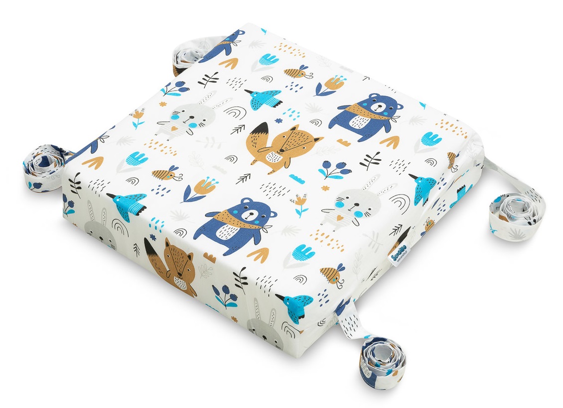 Pohodlný podsedák, ktorý vám pomôže dosiahnuť na stôl. Toto je ideálna voľba, keď je vaše dieťa príliš veľké na vysokú stoličku a príliš malé na štandardnú stoličku. Vo vnútri je hrubá (8 cm) polyuretánová pena, ktorá je odolná voči deformácii a poskytuje vysoký komfort. Poťah je vyrobený zo 100% bavlny a má zips, vďaka ktorému sa dá ľahko sňať a prať. Vďaka univerzálnej veľkosti (32 cm x 32 cm x 8 cm) je vhodný pre štandardné stoličky. Je ľahký a ľahko si ho vezmete so sebou kamkoľvek. Všité popruhy umožňujú jej stabilné a bezpečné pripevnenie k stoličke.