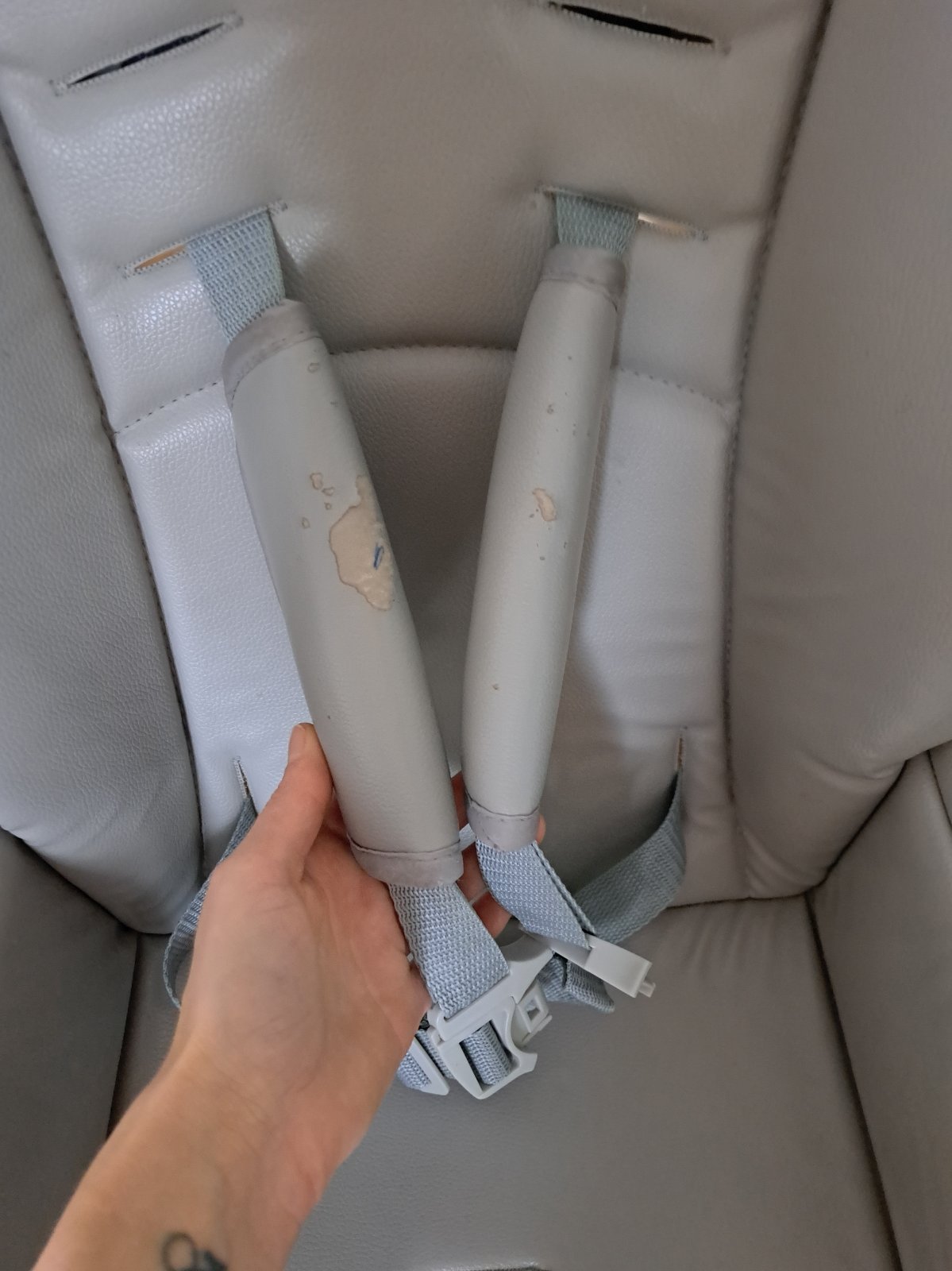 Predám detskú jedálenskú stoličku Kinderkraft,poškodený poťah na vrchu stoličky a pri popruhoch viď foto,vo funkčnosti nebráni. Cena 15eur,osobný odber Tr.Stankovce.