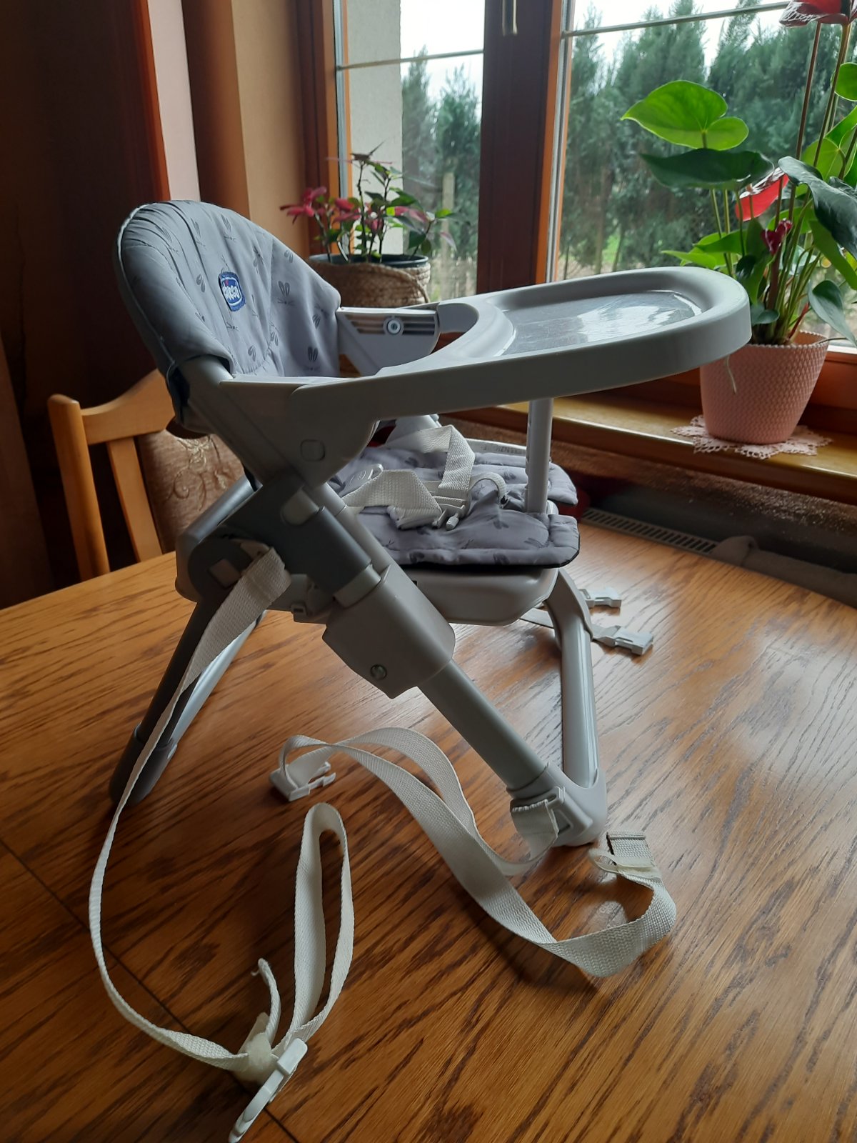 Výškovo je nastaviteľný v 4 polohách. Prispôsobuje sa rastu dieťaťa, ale aj rôznym výškam jedálenských stoličiek či stolov.