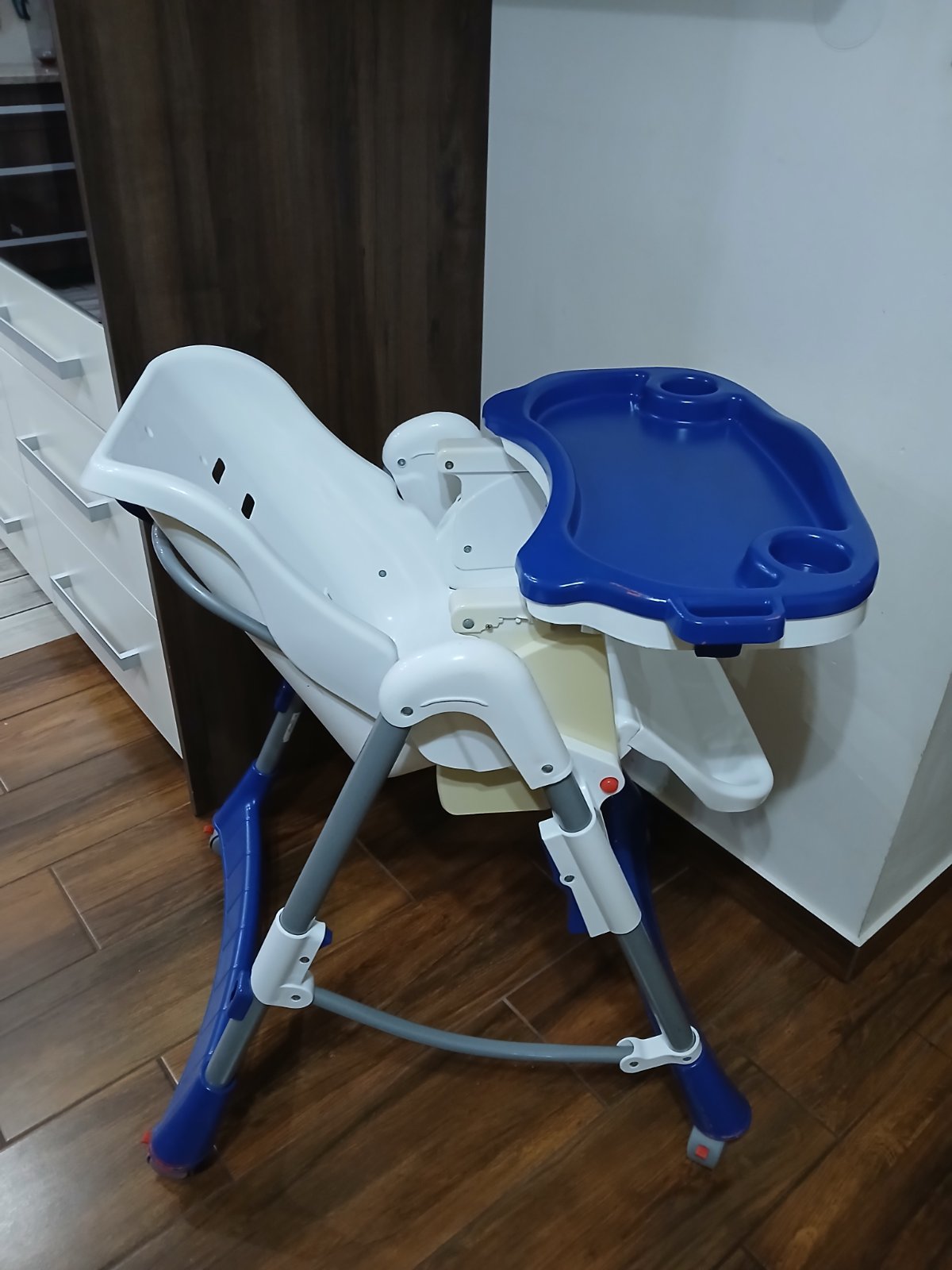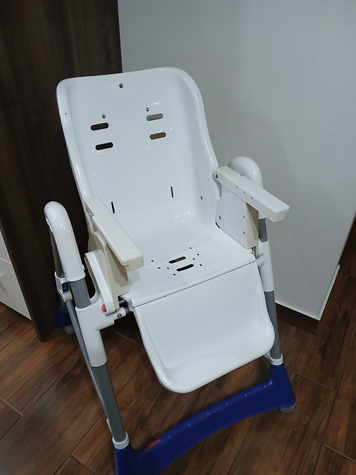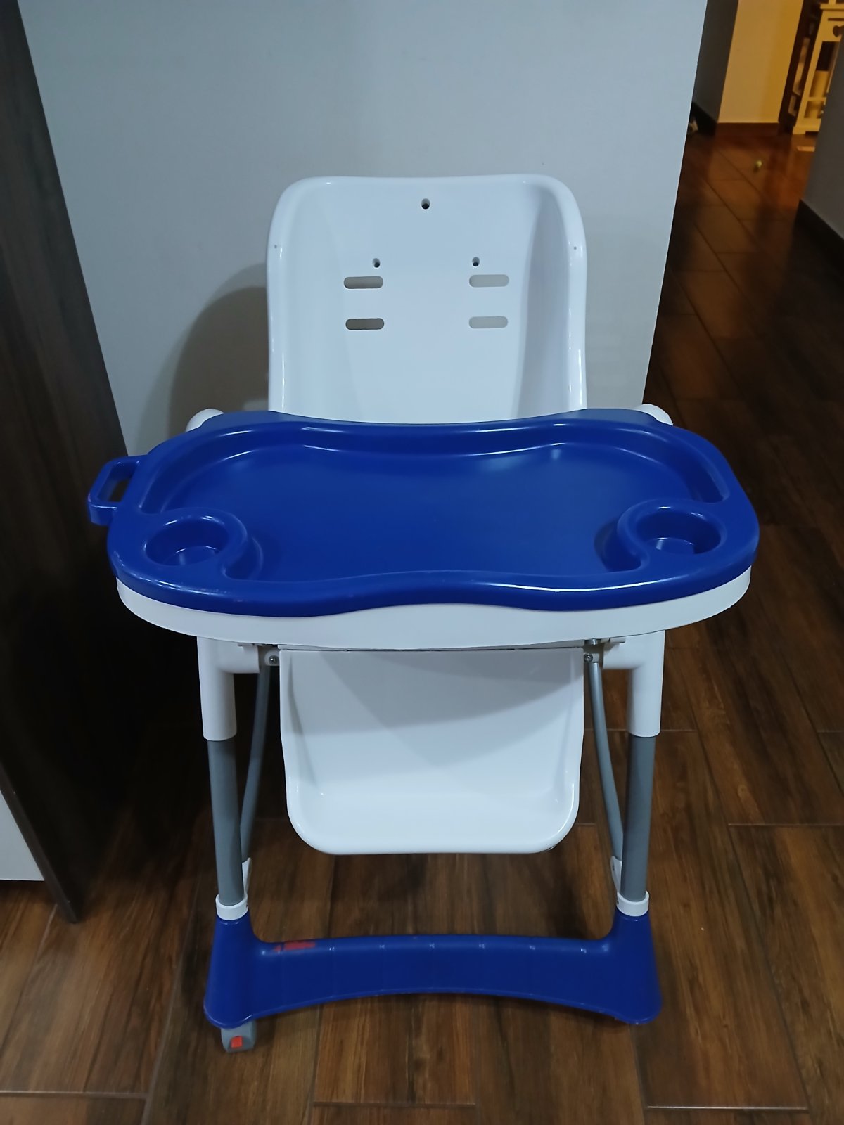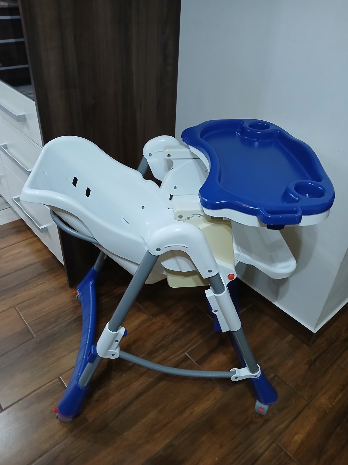 Predám detskú jedálenskú stoličku. V dobrom používanom stave. 3 polohy opierky, pultík sa dá odobrať a stolička sa dá prisunúť ku stolu. Popruhy už nemáme, ani mäkkú výplň sedadla, my sme dávali vankúš za chrbátik. V strede z pultíka má stĺpik takže dieťa nevypadne. Má viacero polôh na výšku od nízkej stoličky až po vysokú pre vysokých rodičov. Veľmi ľahko sa posúva na 4 kolieskach ktoré sa dajú zaistiť. Prefarbovali sme ju z ružovej na modrú preto na niektorých miestach po umývaní začalo byť vidieť tú ružovú farbu. Pri vážnom záujme sa vieme na cene dohodnúť ešte. Osobný odber Uzovce-okr. Sabinov.