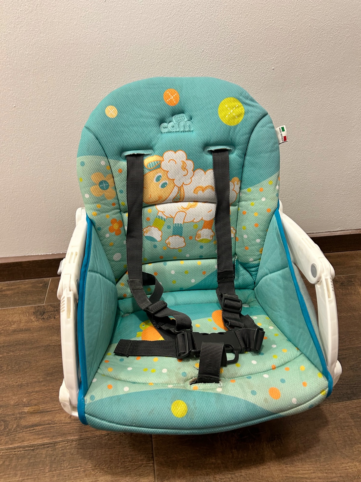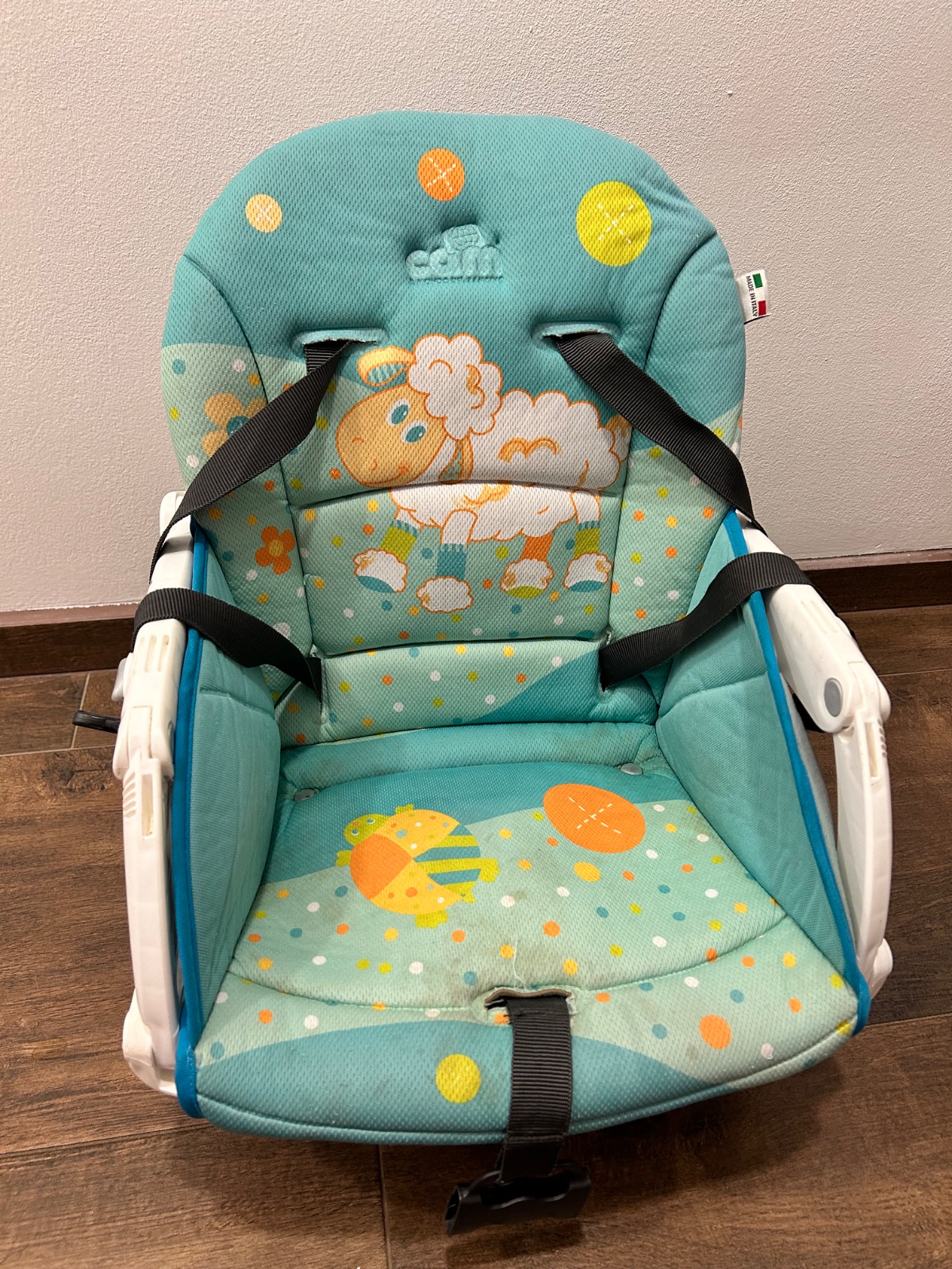 Velmi skladna, upevnite na akukolvek beznu stolicku, super aj na cestovanie. Povodna cena 85 eur. Fliaciky na potahu, vid foto, zohladnene v cene.