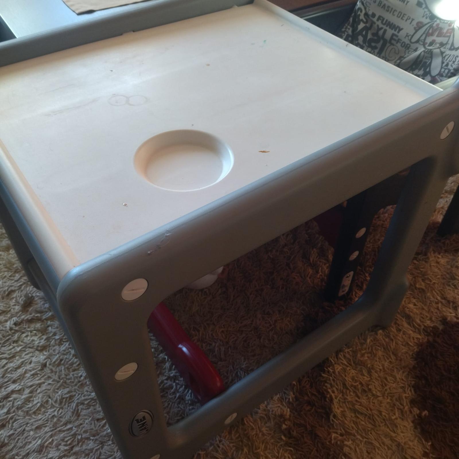 Ponúkam zachovalu detsku sedačku Zn. Jane možnosť neskôr využiť aj ako stôl a stoličku pre dieťa do 6 rokov. Na začiatku sa dá zložiť ako krmiaca vysoká stolička pre batoľatá. 2 varianty v jednom. Nafotena je ako rozložená. Veľmi praktické v zachovalom stave. Osobný odber