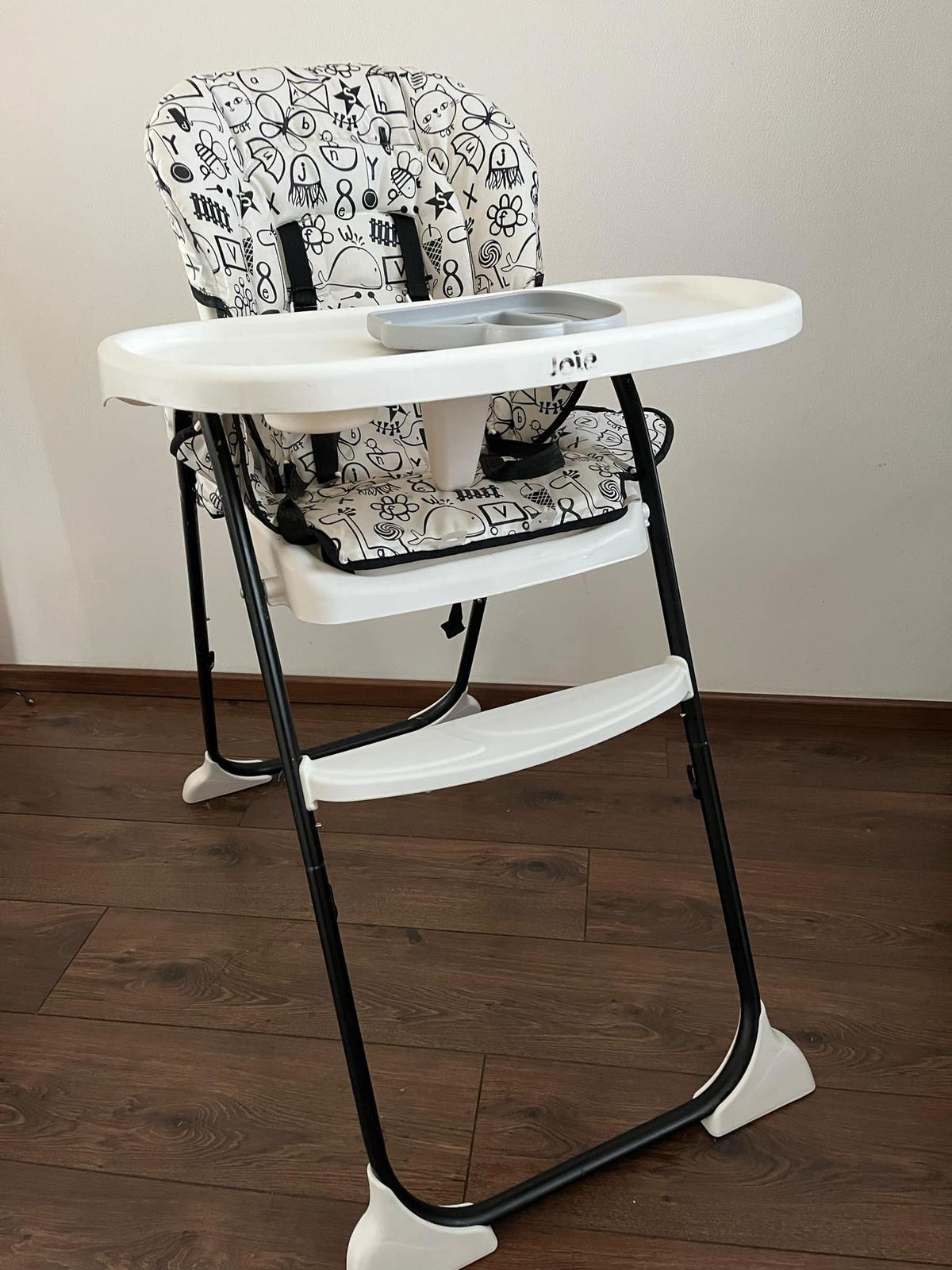 Jedalenska stolicka Joie,polohovatelna opierka,aj nozicky,vyberatelny pultik,2 tacky.Boli sme s nou velmi spokojni.Osobny odber v Petrzalke.