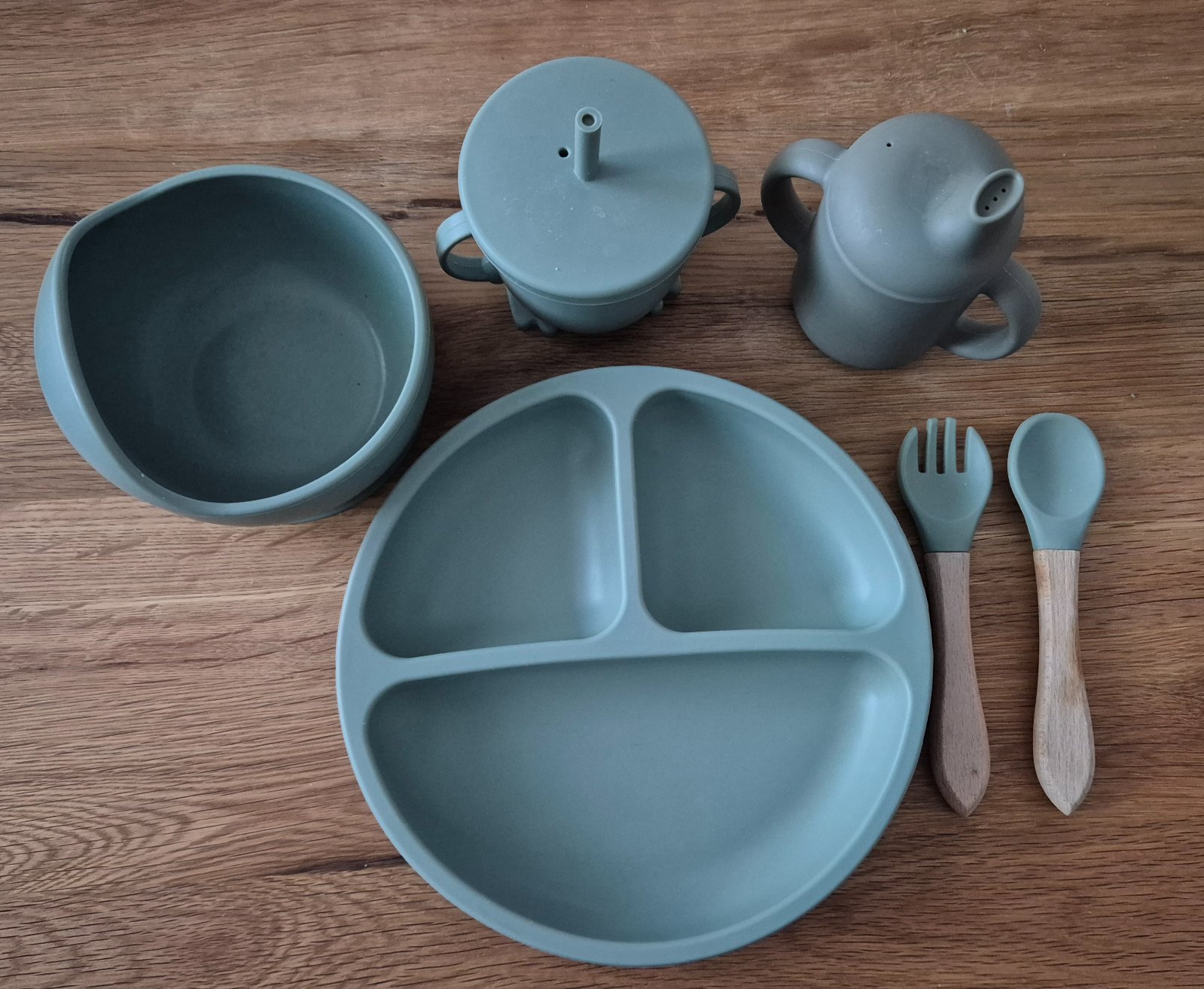 Predám používaný, ale za to veľmi zachovalý, nepoškodený detský silikónový set. Riad je vhodný do mikrovlnnej rúry aj do umývačky riadu. Cena je vrátane poštovného.