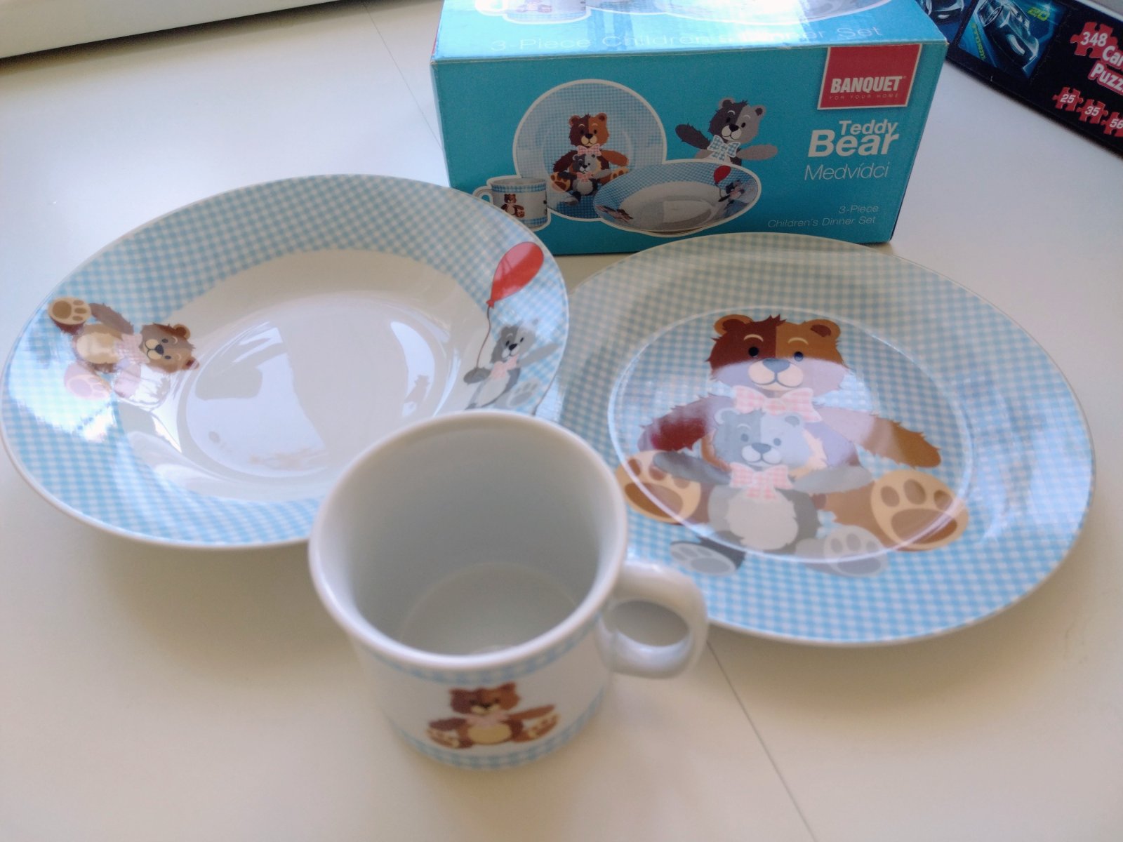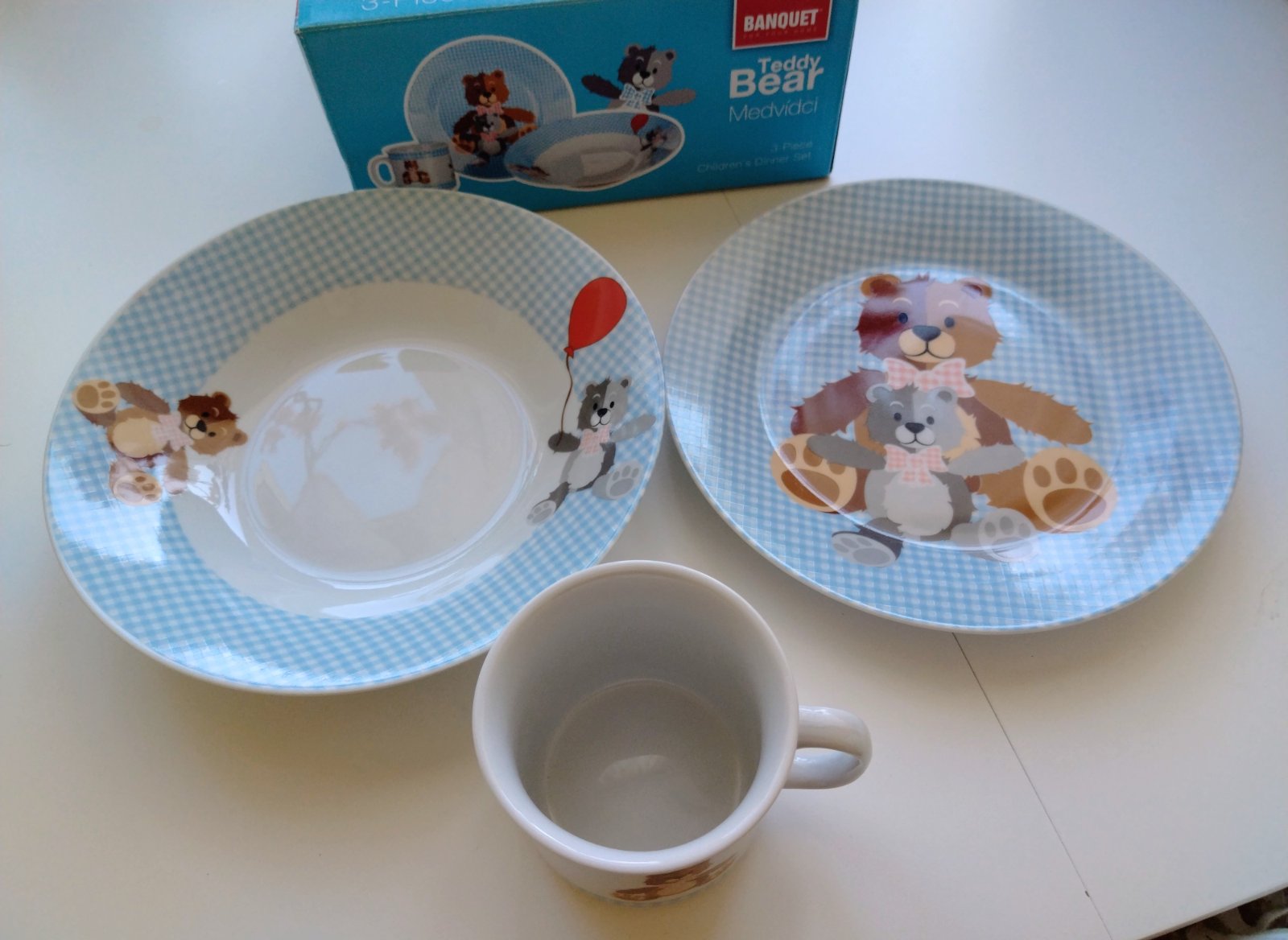 Detská jedálenská súprava Medvedíci (Teddy Bear) od značky Banquet. Táto porcelánová sada pozostáva z troch častí:
