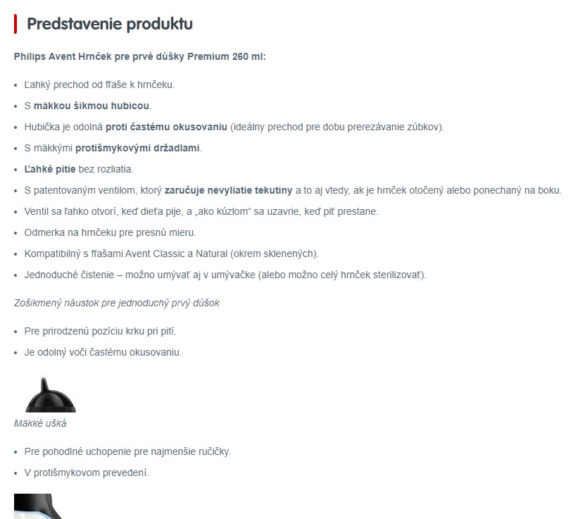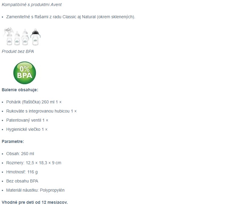 Philips AVENT Hrnček pre prvé dúšky Premium 260 ml ružový-popis na foto
