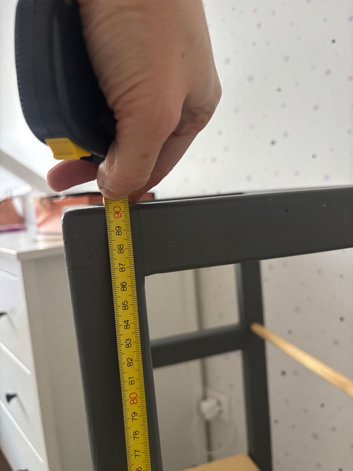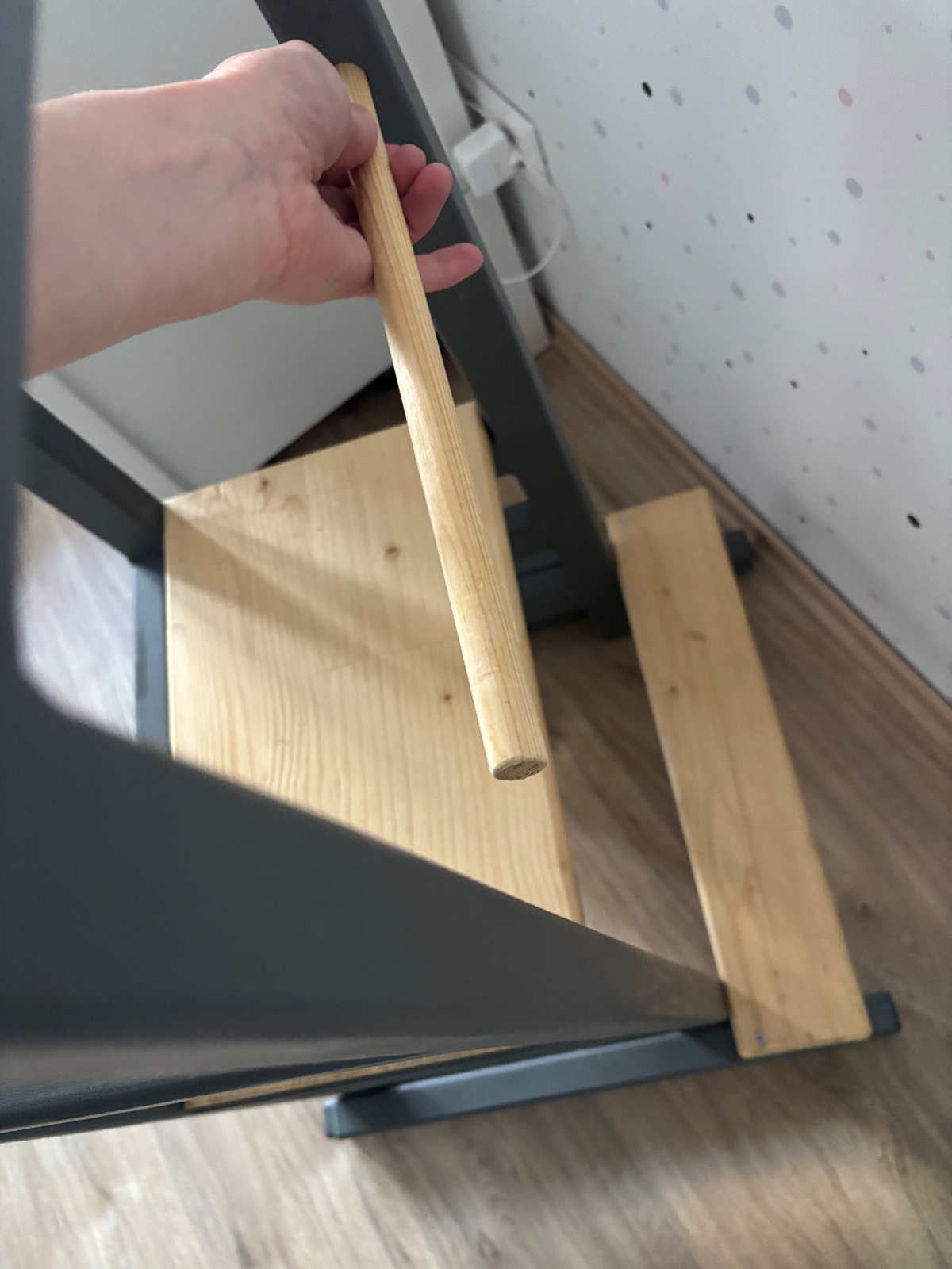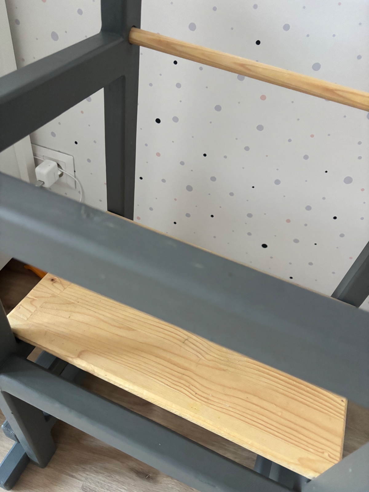 Veza je pouzivama,sme-tam skrtanex,odlupnuta farba a podobne-snazila som sa nafotit. Najlepsie osobne aj vidiet,ma 3 stupienky a vrchna tycka sa da vybrat