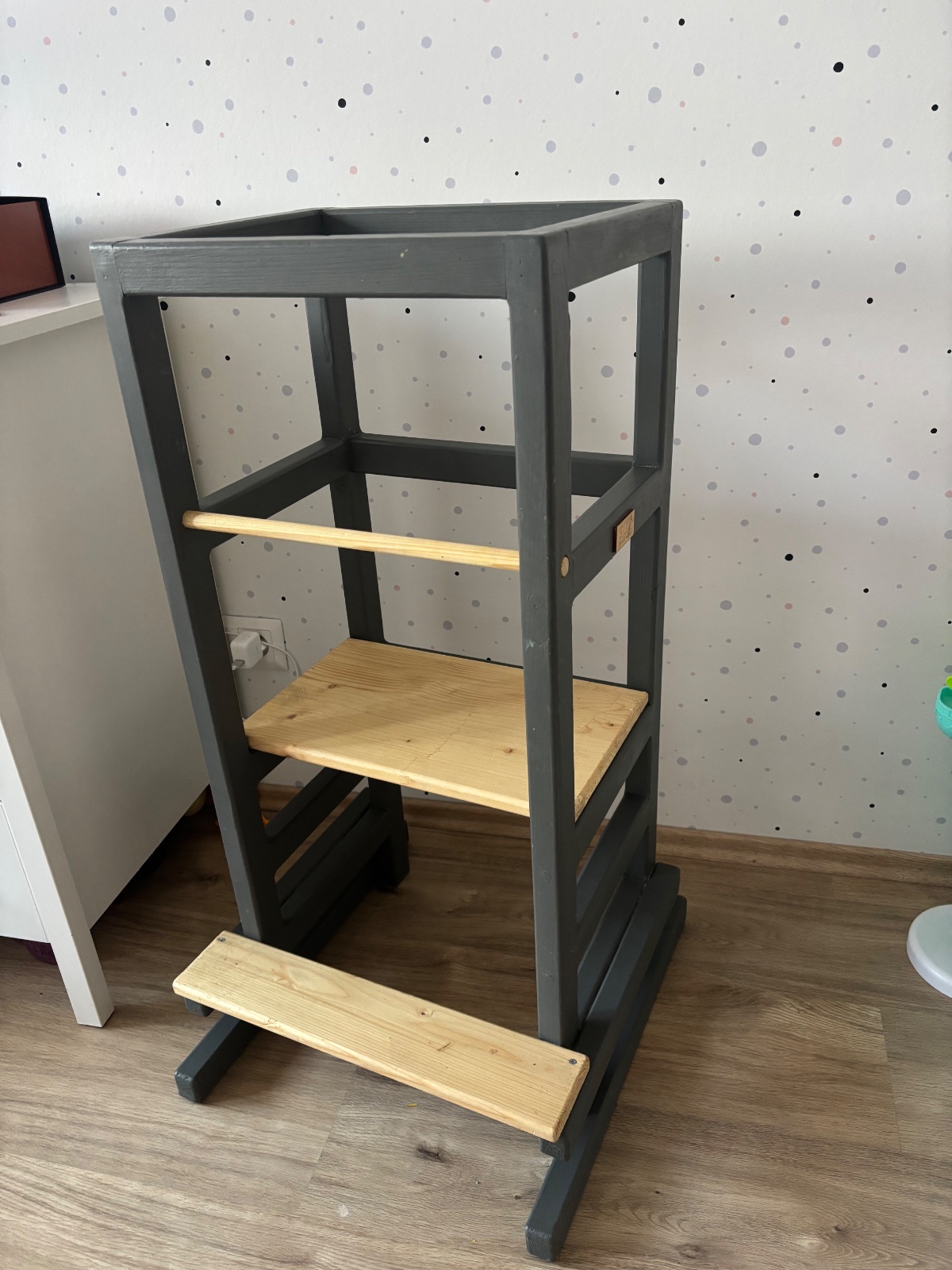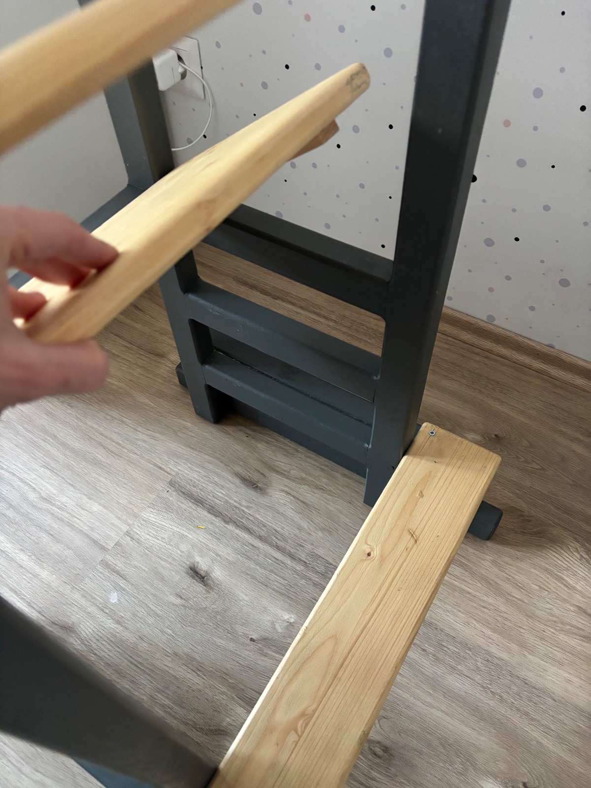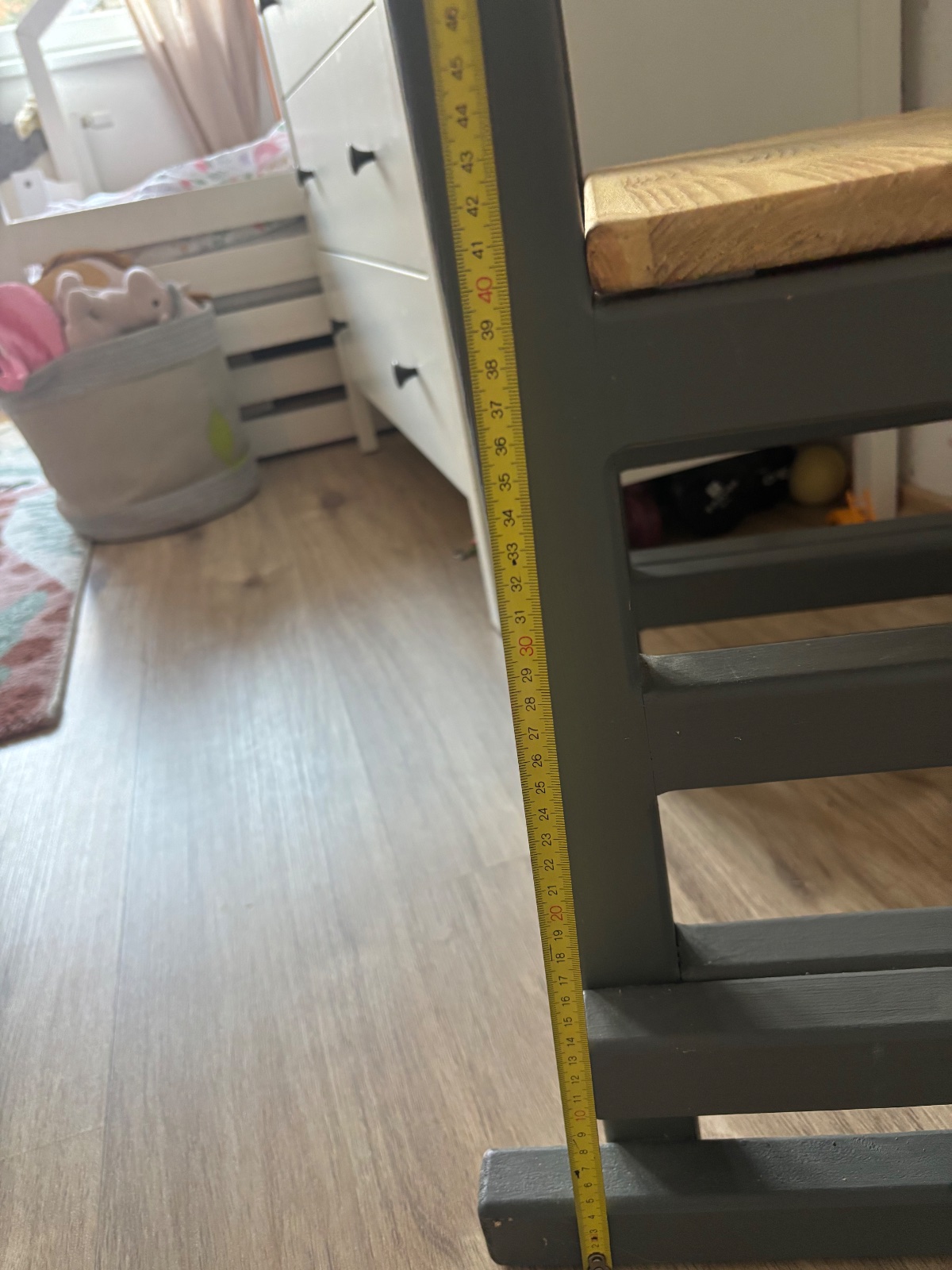 Veza je pouzivama,sme-tam skrtanex,odlupnuta farba a podobne-snazila som sa nafotit. Najlepsie osobne aj vidiet,ma 3 stupienky a vrchna tycka sa da vybrat