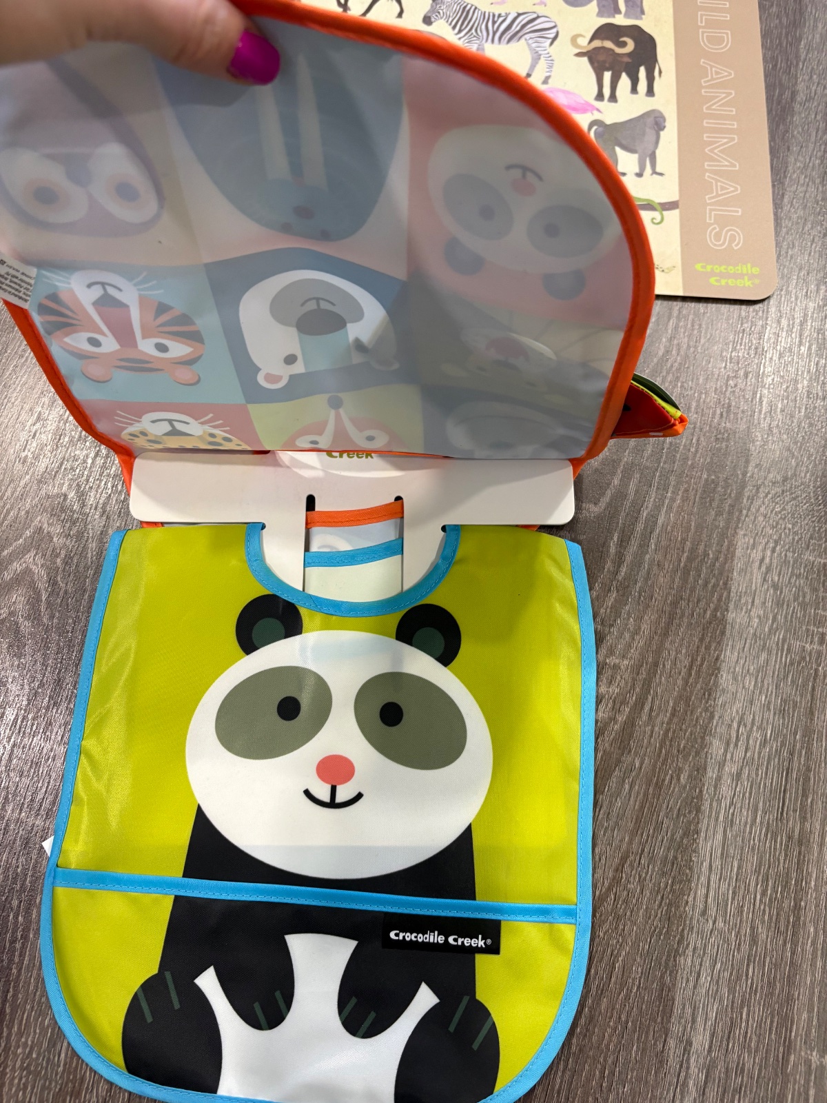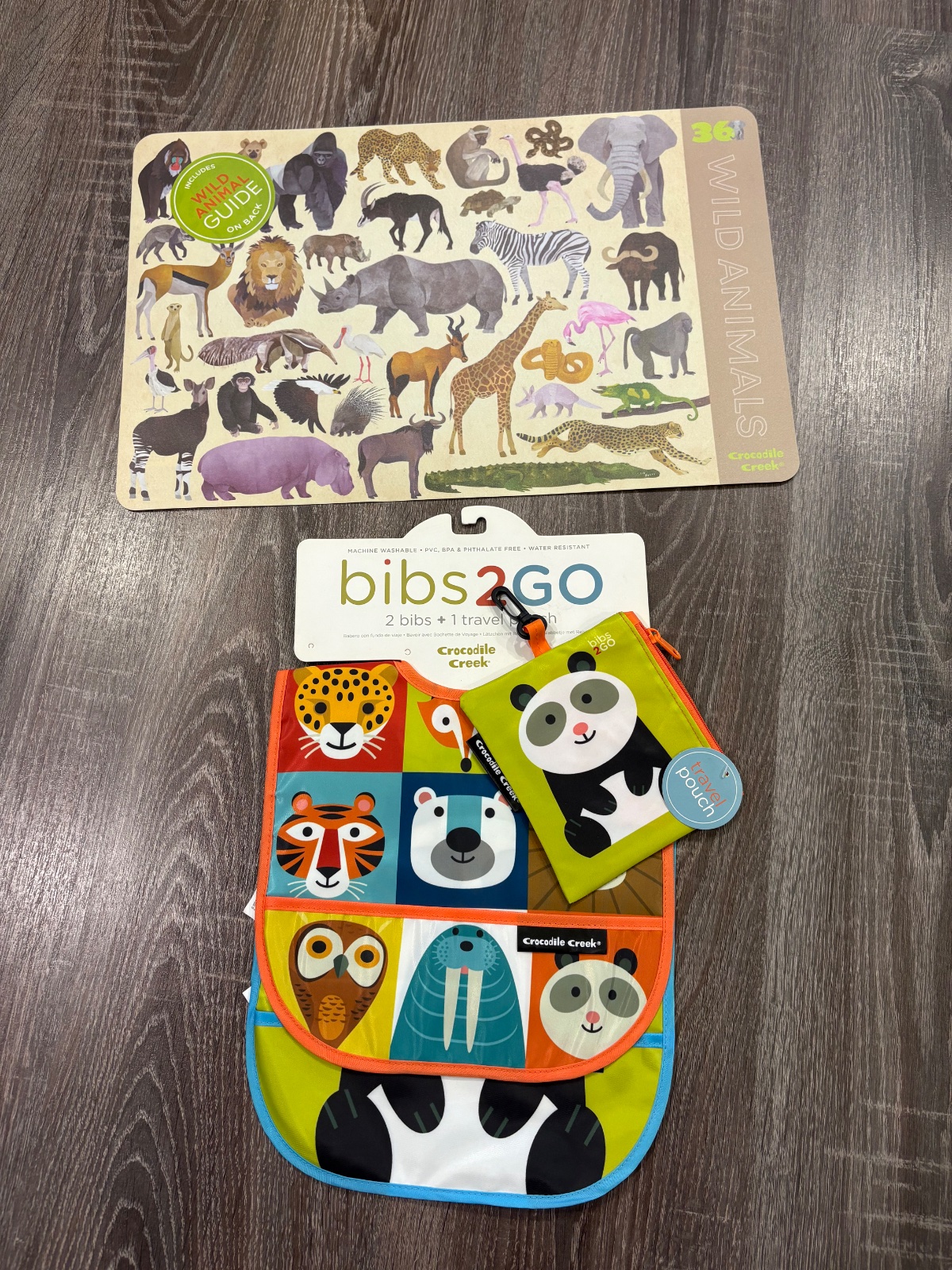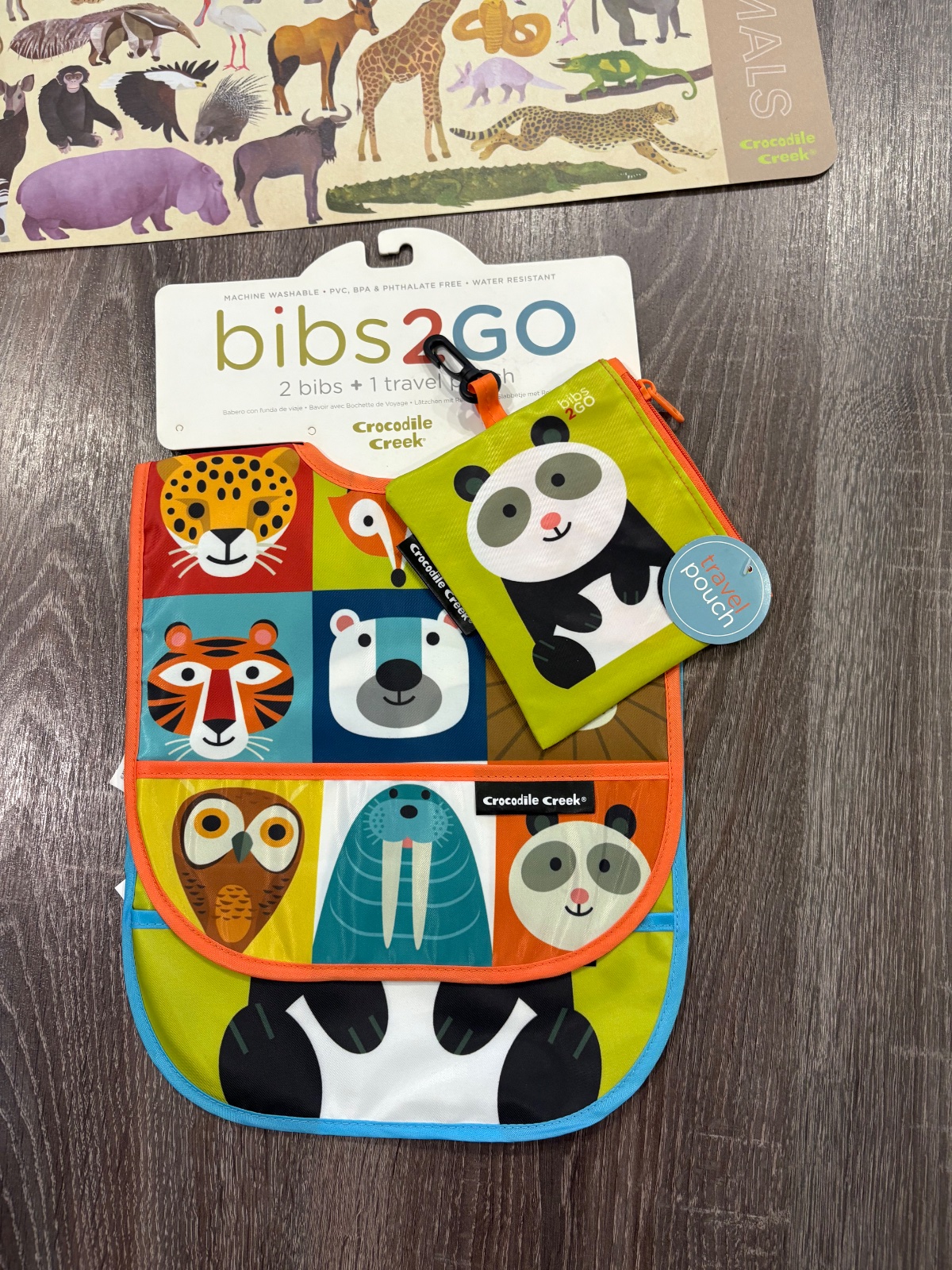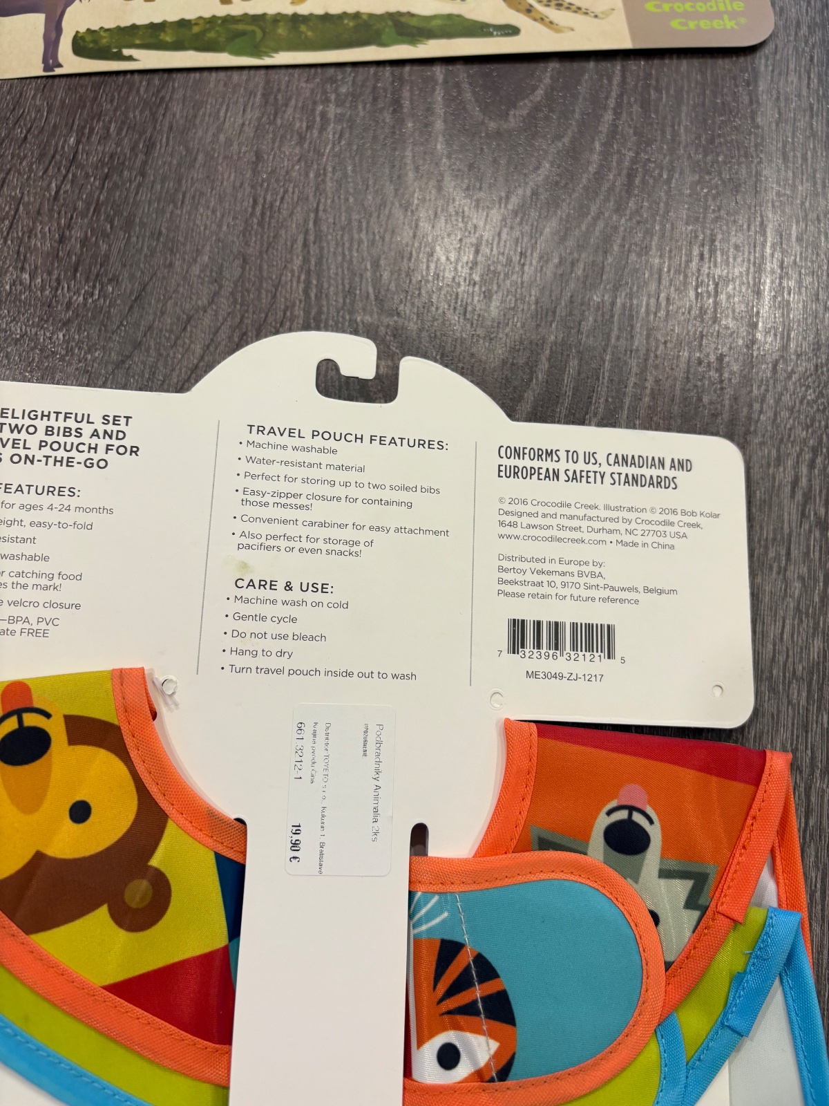 7p5k.Praktické a hravo ilustrované podbradníky v dvoch vizuálnych prevedeniach so zapínaním v zadnej časti na krku dieťatka formou suchého zipsu. Súčasťou balenia je aj praktické cestovné vrecko na zips s plastovým háčikom na zavesenie.