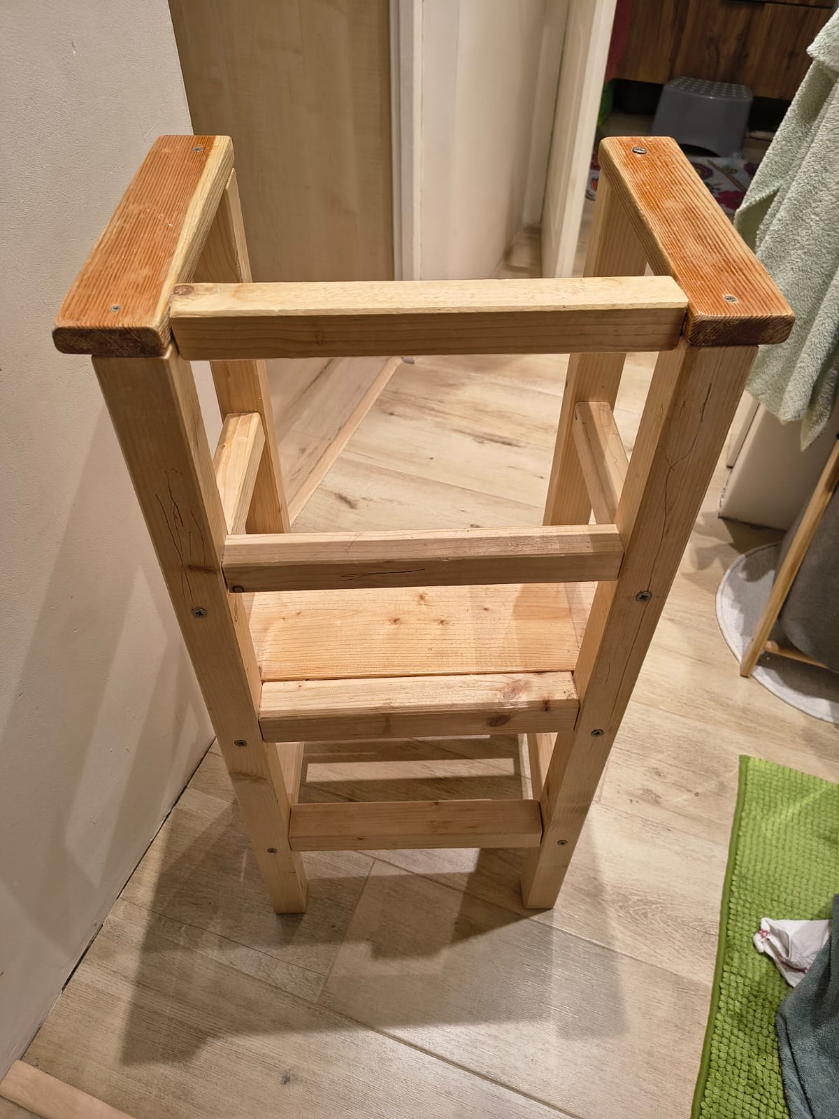 Veža je v peknom stave, prírodné prevedenie. Paličky navrchu sa dajú podľa potreby vybrať, stupienok sa dá presunúť tiež vyššie podľa výšky dieťaťa.