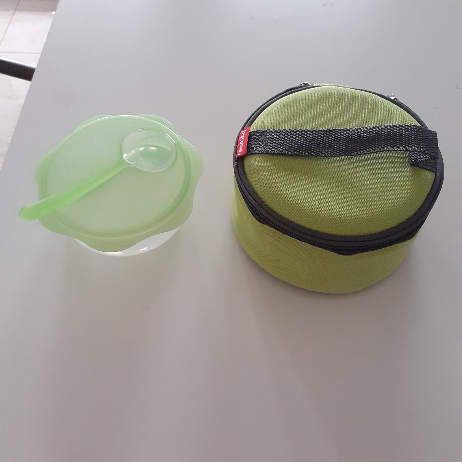 Predam cestovnu misku s lyžičkou pre deti a termotaškou. Miska je vhodna do chladničky,mrazničky aj mikrovlnky. Môžete v nej nosit polievku alebo riedke pokrmy ,nevyleje sa a termo taška udrží pokrm teplý. Tovar je v top stave.