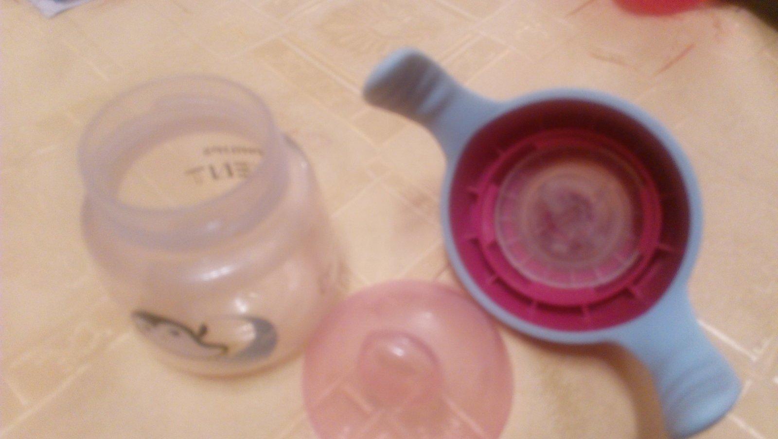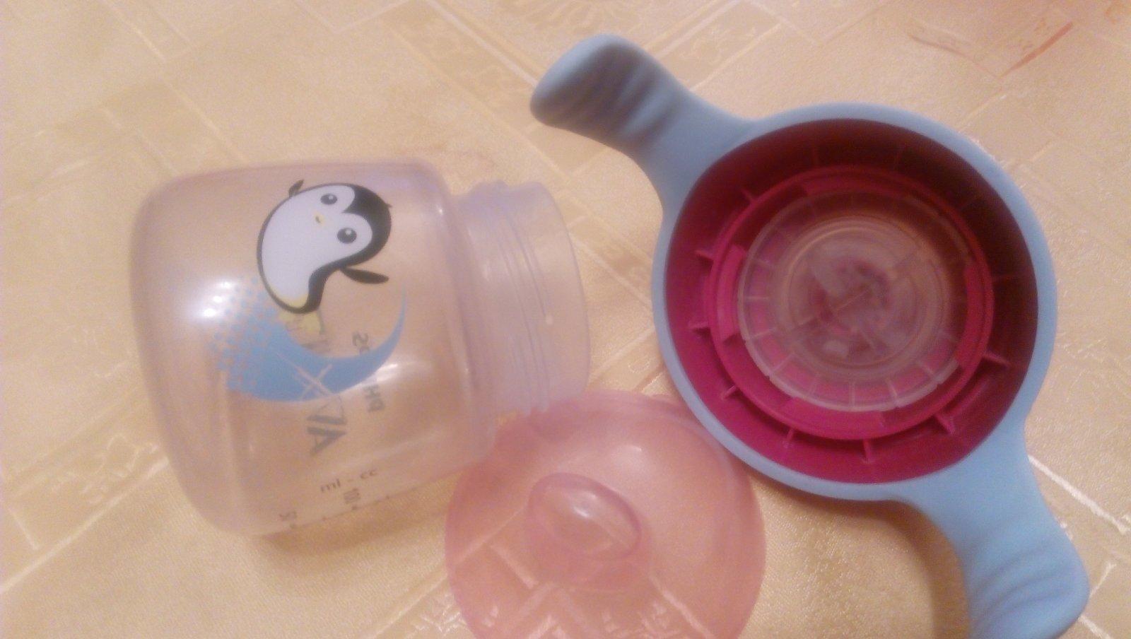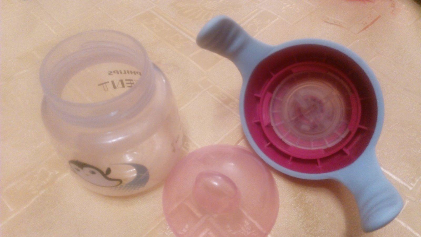 Zn. Avent , vhodný na prechod z fľaše na pohár. Má tesniacu gumu takže sa nevylieva tekutina pri prevráteni. Ma mäkký naustok. Používaný ale v dobrom stave.