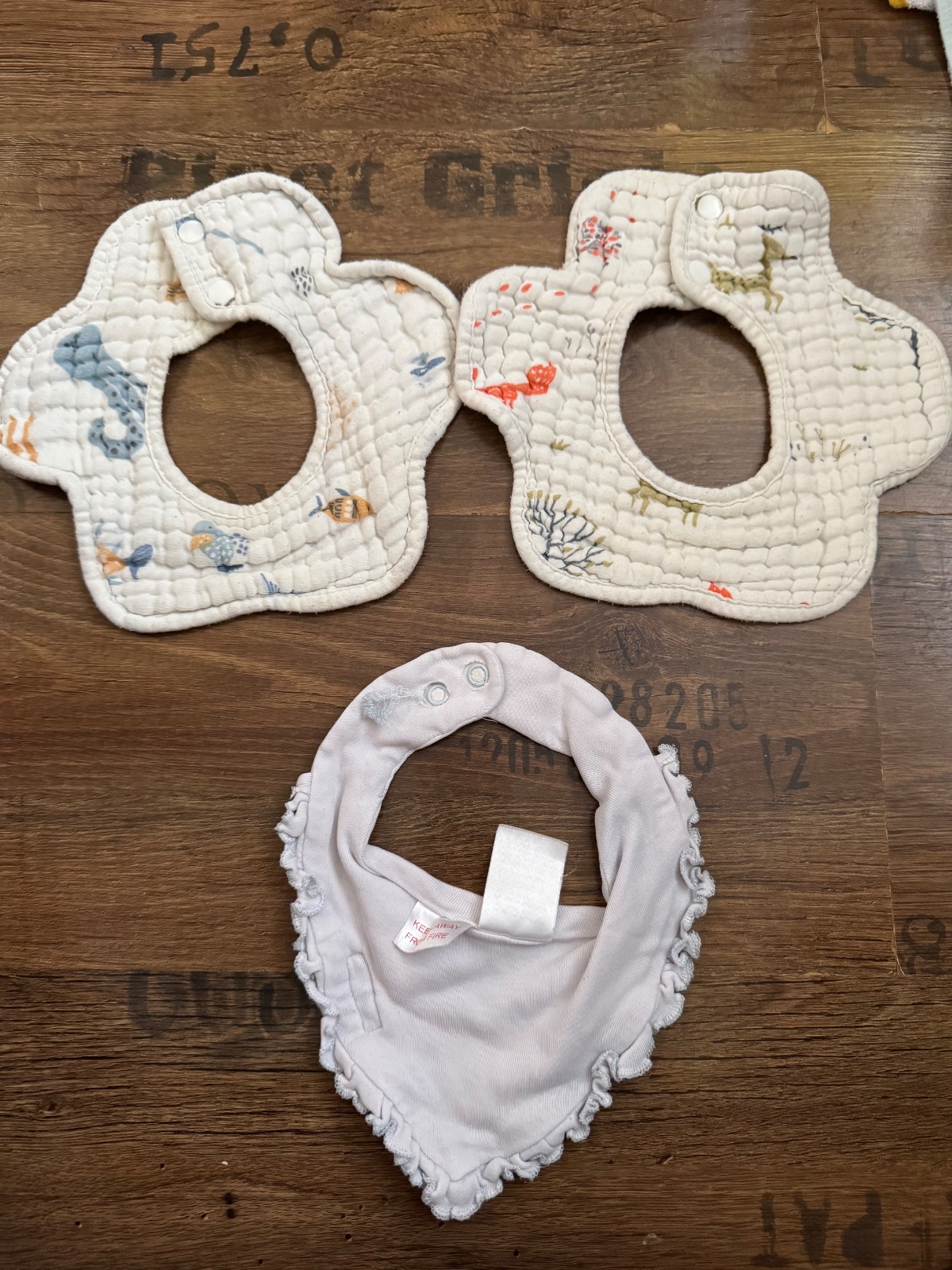 Ponúkam slintáčiky / nákrčníky. Sú to 3ks používané, ale v dobrom stave. 2ks mušelínové so zvierstkami, výborný stav, pár krát použité, posledný biely newbie peikladám zdarma, má natrhnutý cvok. Inzerujem ich viac aj od Elodie a pod…Poštovné podľa taríf.