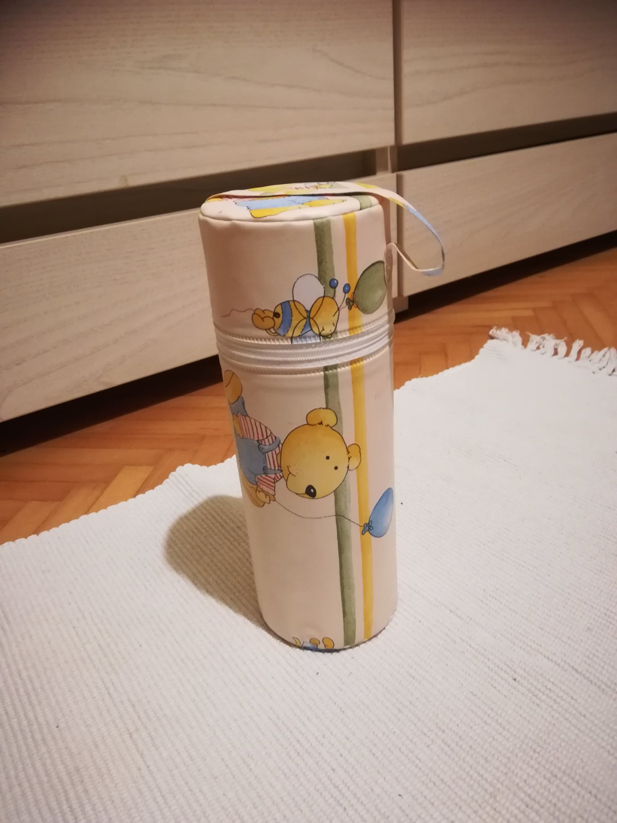 Predám termoobal na fľašu nepoužitý. Má odlomený kúsok PVC. Vnútorný priemer je 6,3 cm a výška vnútorná 22 - 23 cm, ten sa nedá presne odmerať, ak nezlomím pravítko ;-).