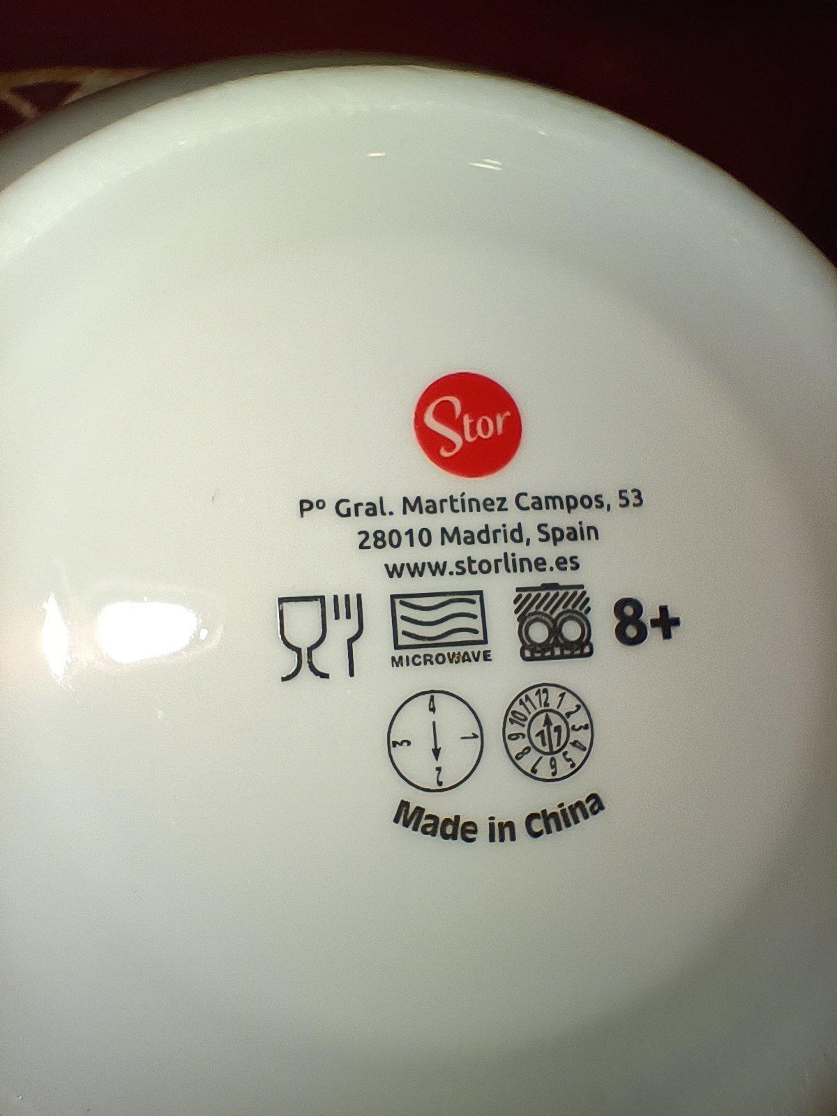 Tanierik miska bez poskodeni. Ziadne praskliny nie je odstiepeny. Hrncek vysuchany od lyzicky