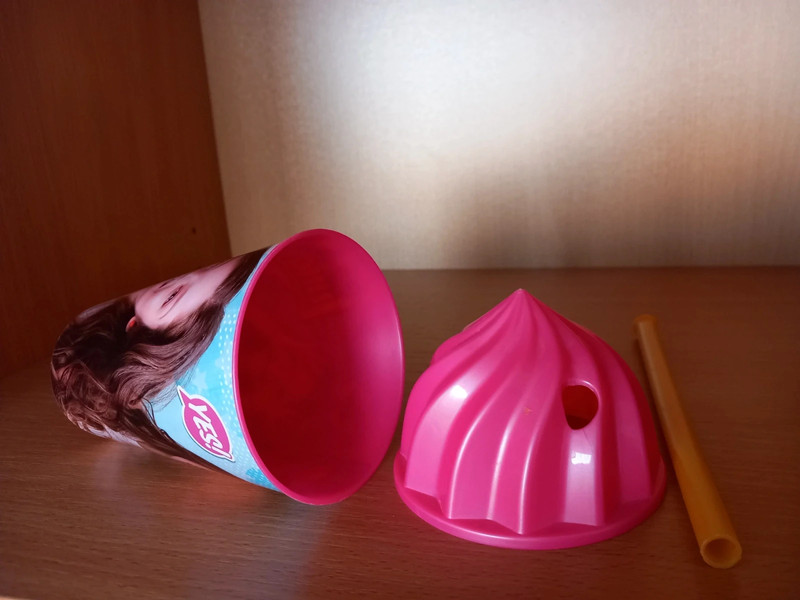 Plastový pohár s objemom 430 ml, vrchnák aj slamka sú odnímateľné.