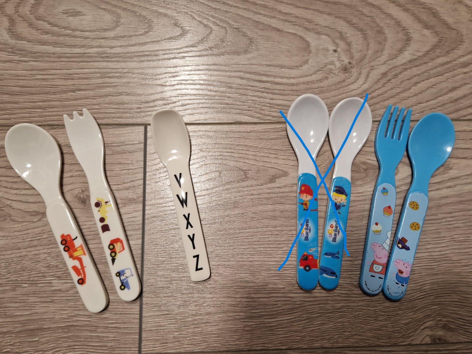 - modra lyzicka a vidlicka prasiatko pepa...spolu 1e