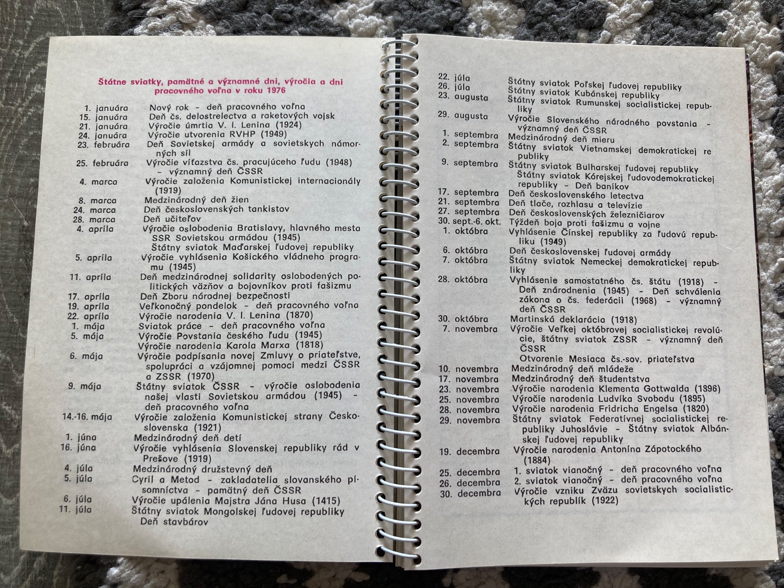 Huby okolo nás, kalendár z roku 1976
