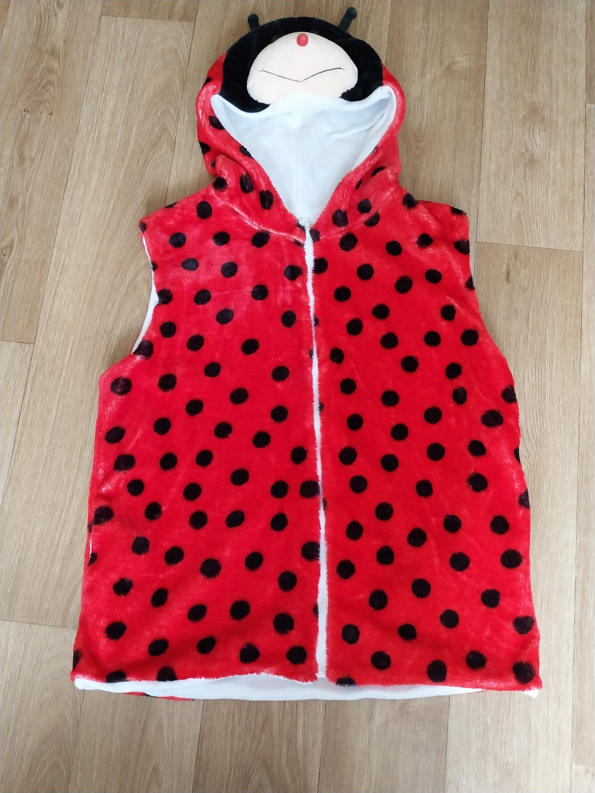 Predám krásnu teplú vestu na zips, kapucňa - lienka, nové nepoužité, veľ. 42 - 44, cena 12 € + pošta
