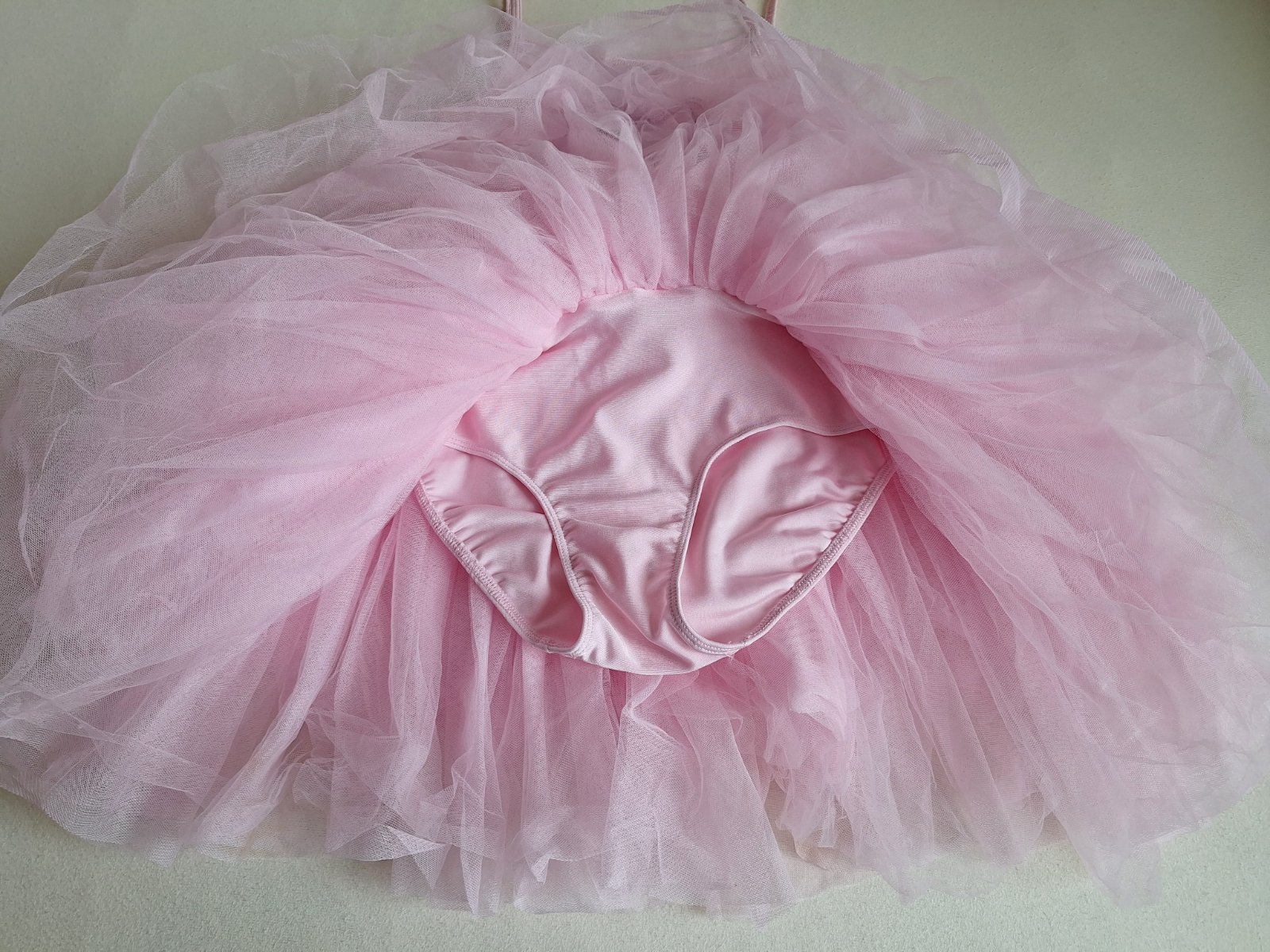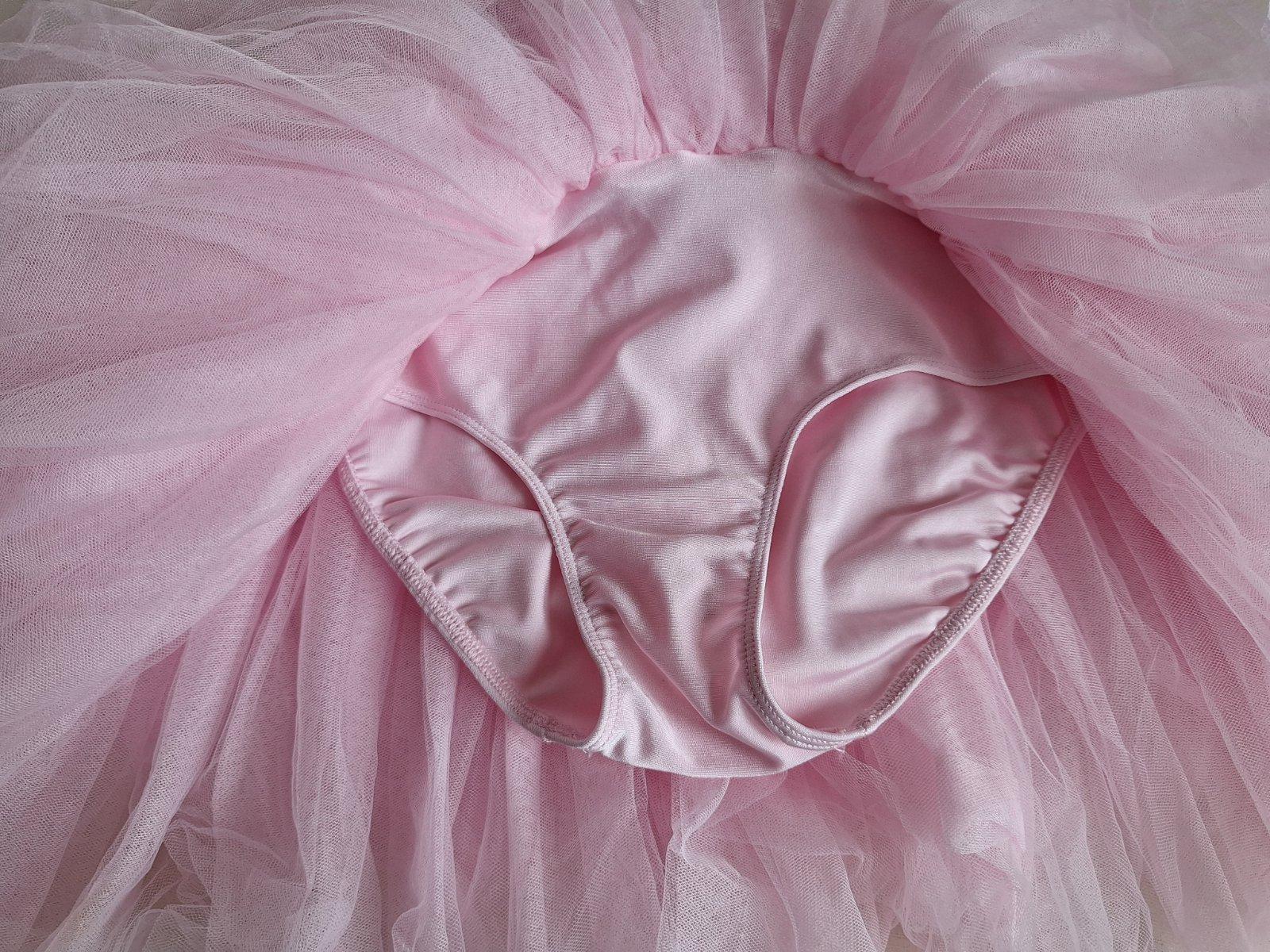 Exkluzívny kostým (baletný trikot) , je v top stave, bez poškodení a známok nosenia, vhodný aj ako dar. Na karneval aj na balet. Extrémne bohato riasená Tutu sukňa, s trblietavými flitrami, v páse mašľa. Silne elastický, oblieka sa ako klasický dres-body.