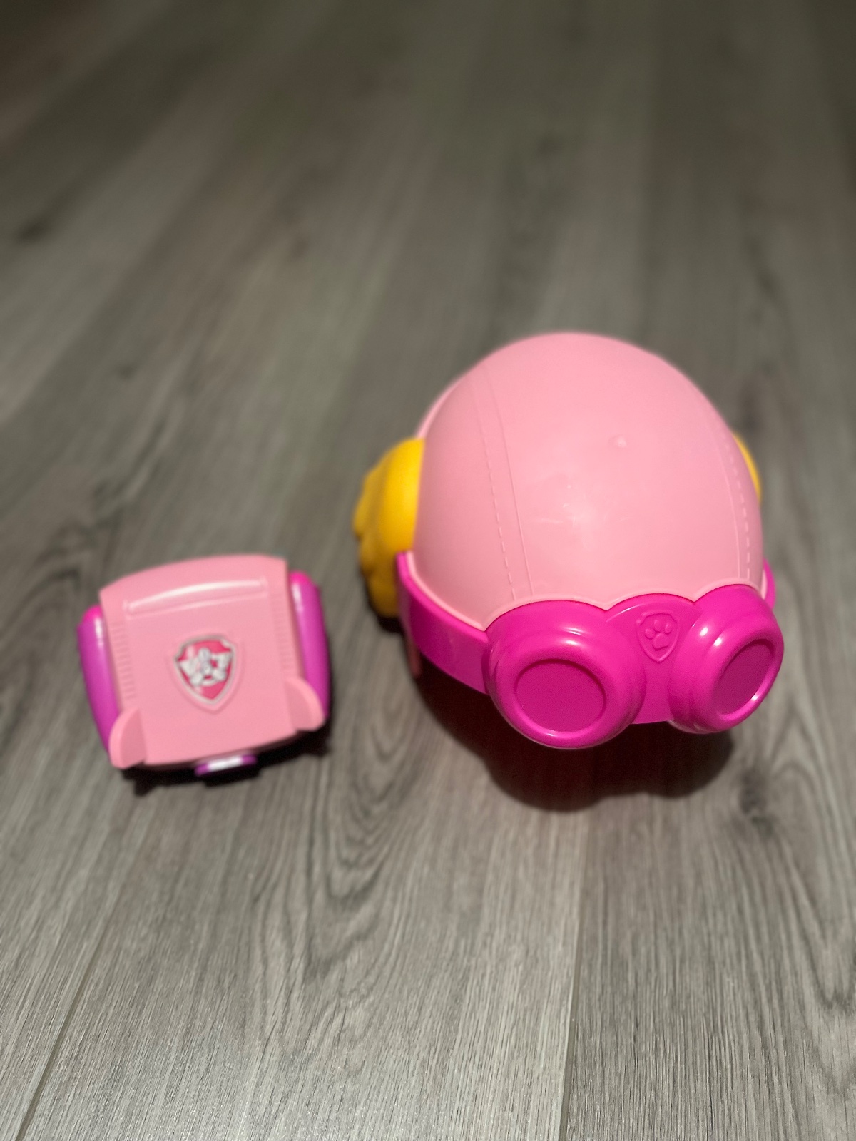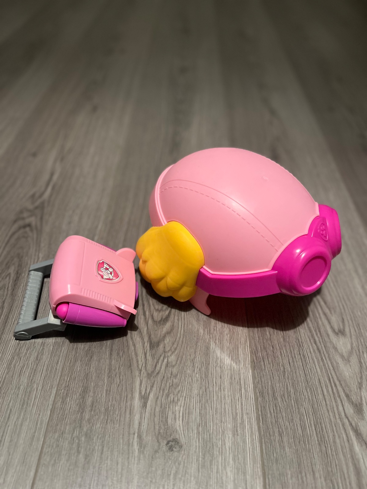SKY helma/prilba a k tomu na ruku taky naramok akoze lietadlo, z ktoreho sa daju vystrelit dva naboje po natishnuti, neletia rychlo, nie je to nic s cim by si dieta ublizilo.