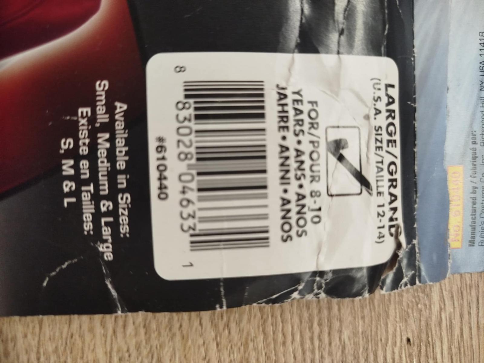 Veľkosť 5-6 rokov, 2 diely, spolu aj s maskou. Dlžka 67cm